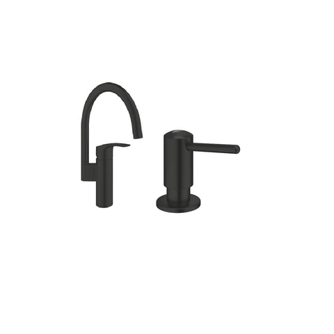 GROHE Eurosmart Keukenkraanset - 18.3cm - hoge uitloop - zeepdispenser - matte black