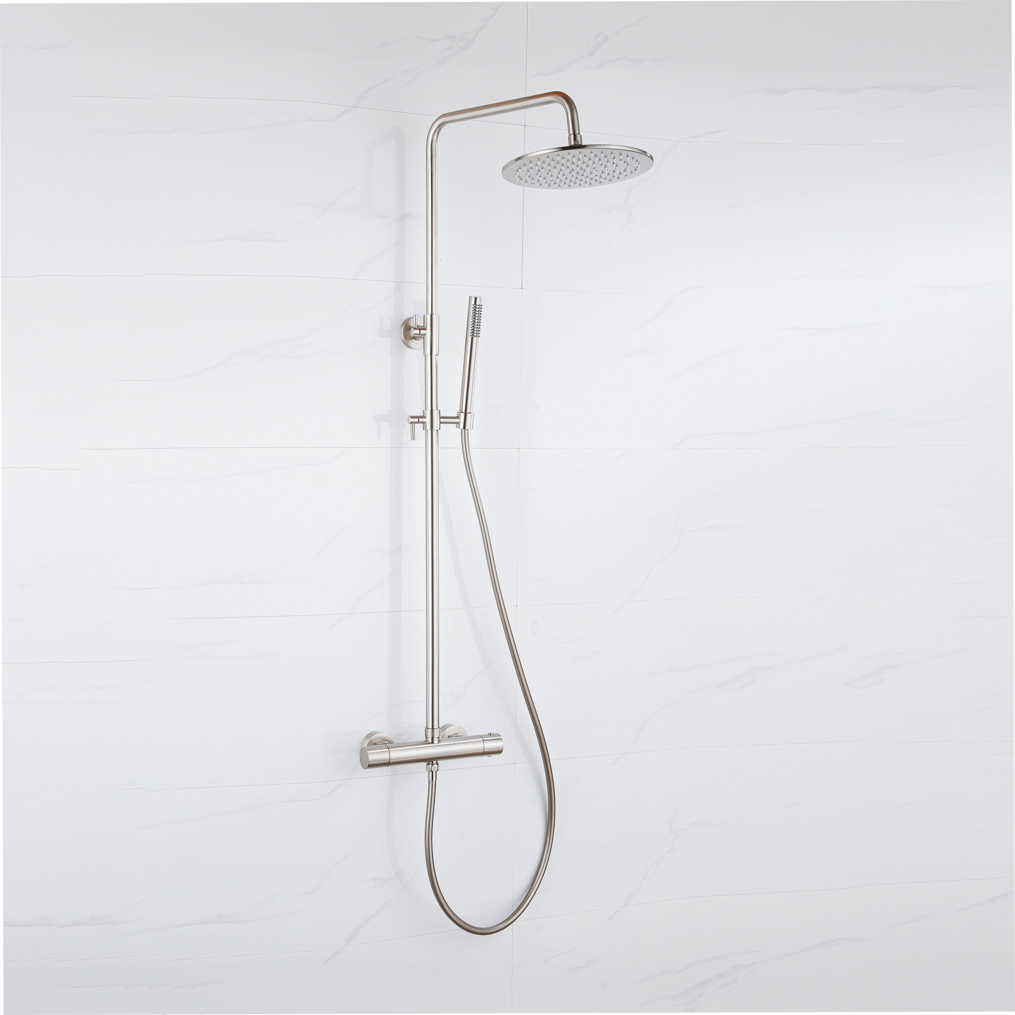 De Fortifura Calvi Thermostatische Regendoucheset is een prachtige toevoeging aan elke badkamer. Met zijn elegante design en hoogwaardige afwerking straalt deze doucheset luxe en stijl uit. Geniet van een ontspannende douche-ervaring met de 25cm hoofddouche, gladde slang en staaf handdouche, allemaal vervaardigd uit geborsteld RVS PVD. Deze set combineert functionaliteit met esthetiek, waardoor je badkamer een moderne uitstraling krijgt.
