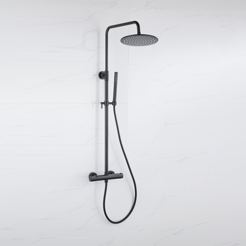 Fortifura Calvi Thermostatische Regendoucheset - 25cm hoofddouche - gladde slang - staaf handdouche - zwart mat