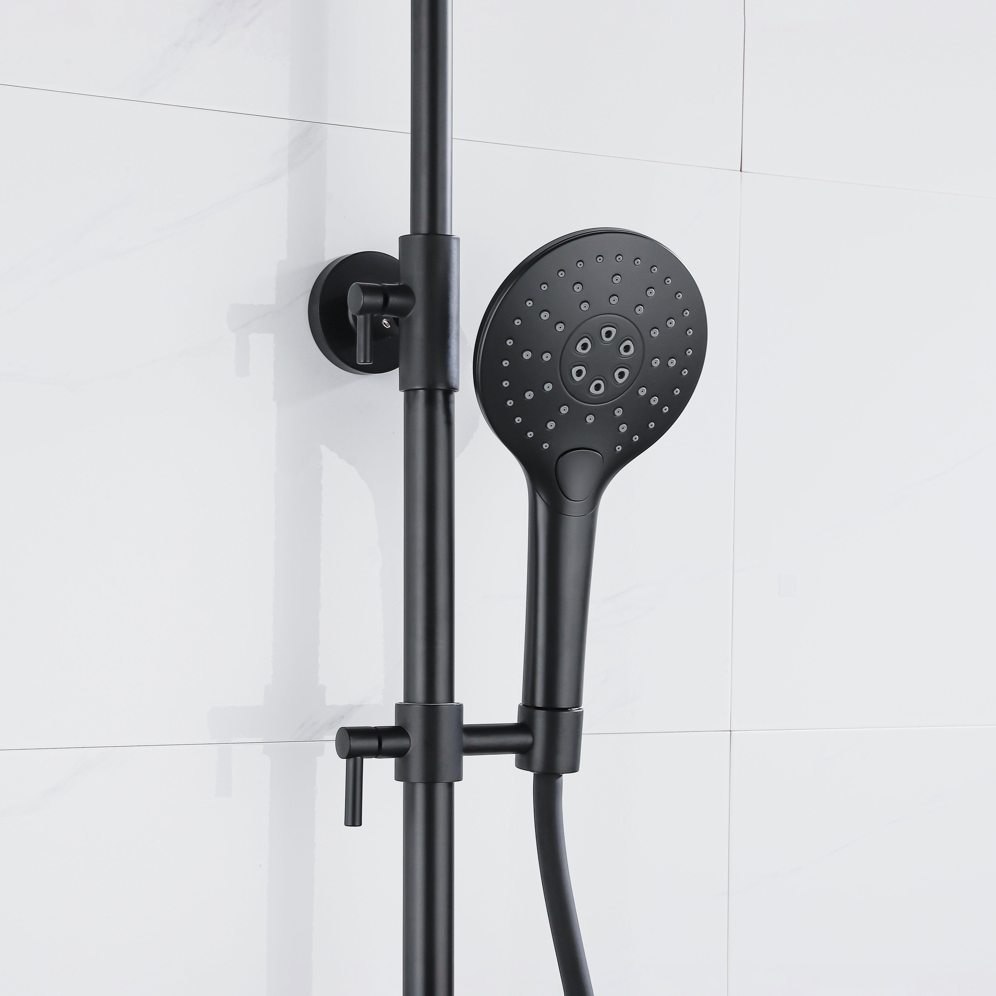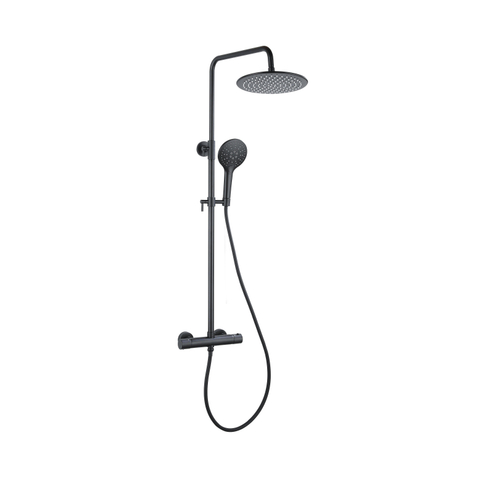 Fortifura Calvi Thermostatische Regendoucheset - 25cm hoofddouche - gladde slang - ronde handdouche - zwart mat