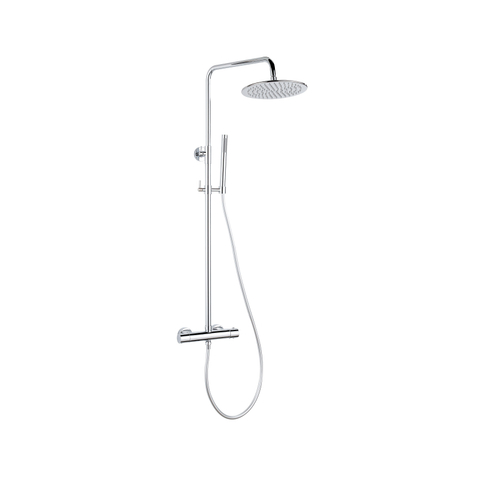 Fortifura Calvi Thermostatische Regendoucheset - 25cm hoofddouche - gladde slang - staaf handdouche - chroom
