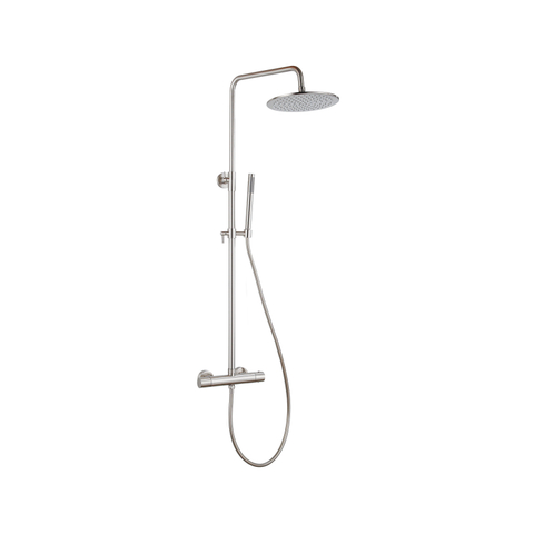 Fortifura Calvi Regendoucheset - thermostatisch - 30cm hoofddouche - gladde slang - staaf handdouche - Geborsteld RVS PVD
