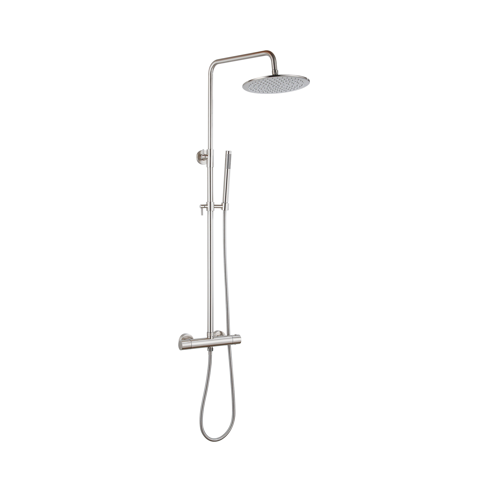 De Fortifura Calvi Thermostatische Regendoucheset is een prachtig stukje vakmanschap dat elke badkamer transformeert tot een oase van luxe en comfort. Met een 30cm hoofddouche, een metalen slang en een elegante staaf handdouche, is dit de perfecte toevoeging aan jouw dagelijkse douche-ervaring. Gemaakt van hoogwaardig geborsteld RVS PVD, straalt deze doucheset klasse en duurzaamheid uit. Geniet van een ontspannende en verfrissende douche-ervaring met de Fortifura Calvi Thermostatische Regendoucheset.