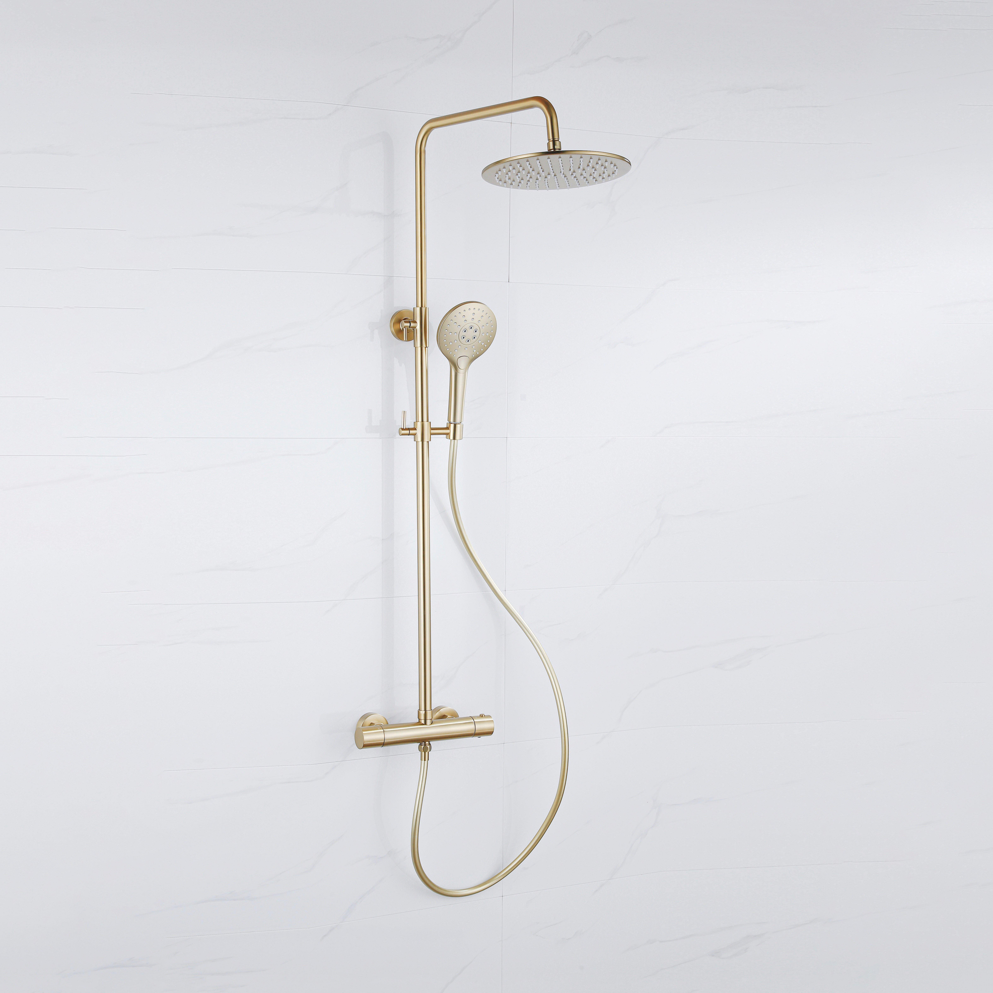 Fortifura Calvi Regendoucheset - thermostatisch - 30cm hoofddouche - gladde slang - ronde handdouche - Geborsteld Messing PVD (Goud)