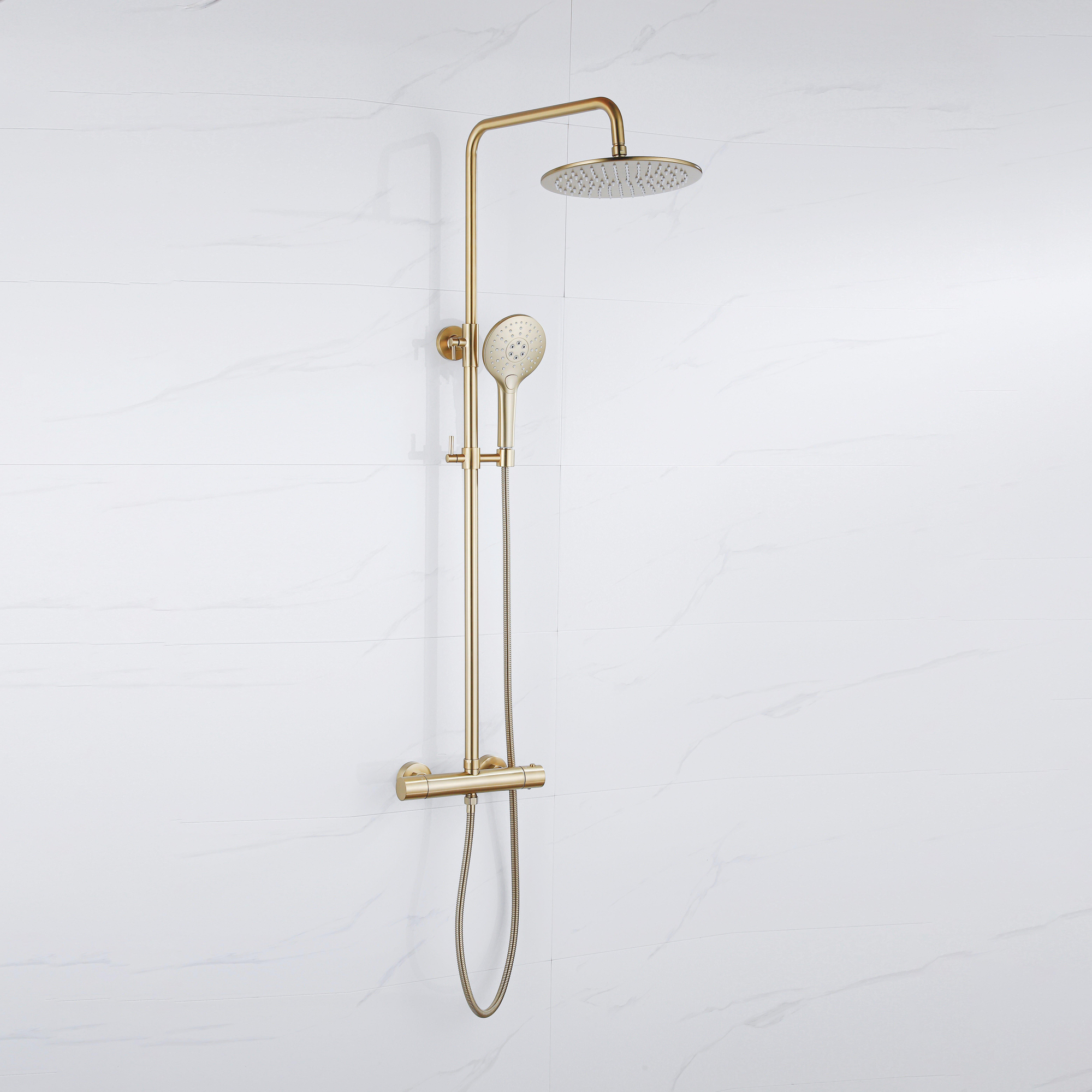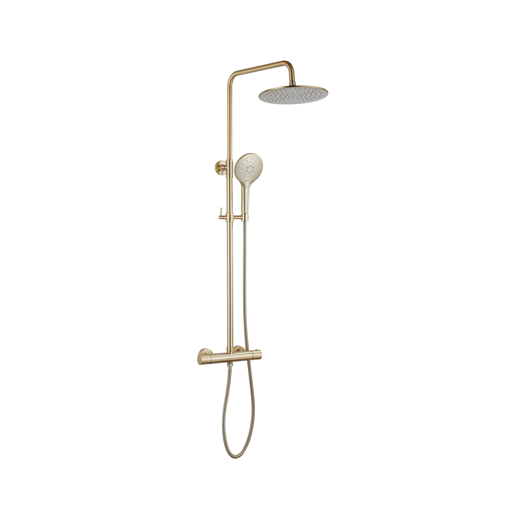 Fortifura Calvi Thermostatische Regendoucheset - 30cm hoofddouche - metalen slang - ronde handdouche - geborsteld messing PVD