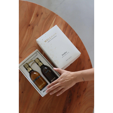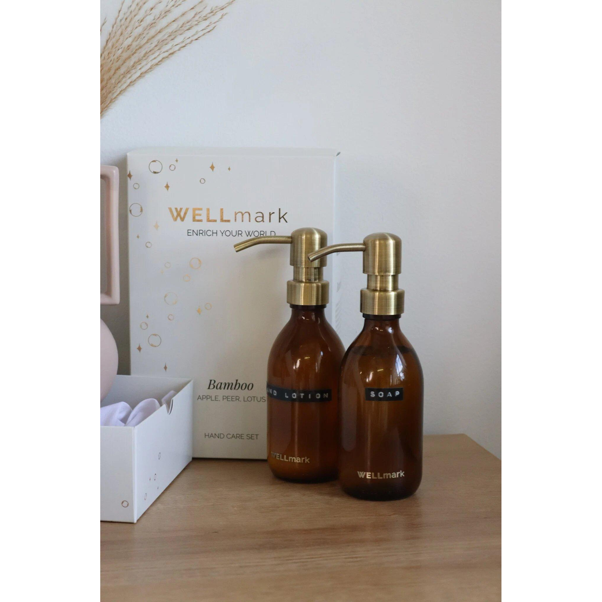 Wellmark Handverzorgingsset - handcreme - 250ml - handlotion - 250ml - bamboo - amber - tekst - soap