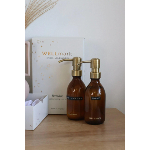 Wellmark Handverzorgingsset giftset - handcreme 250ml - handlotion 250ml - bamboo - amber - tekst: soap