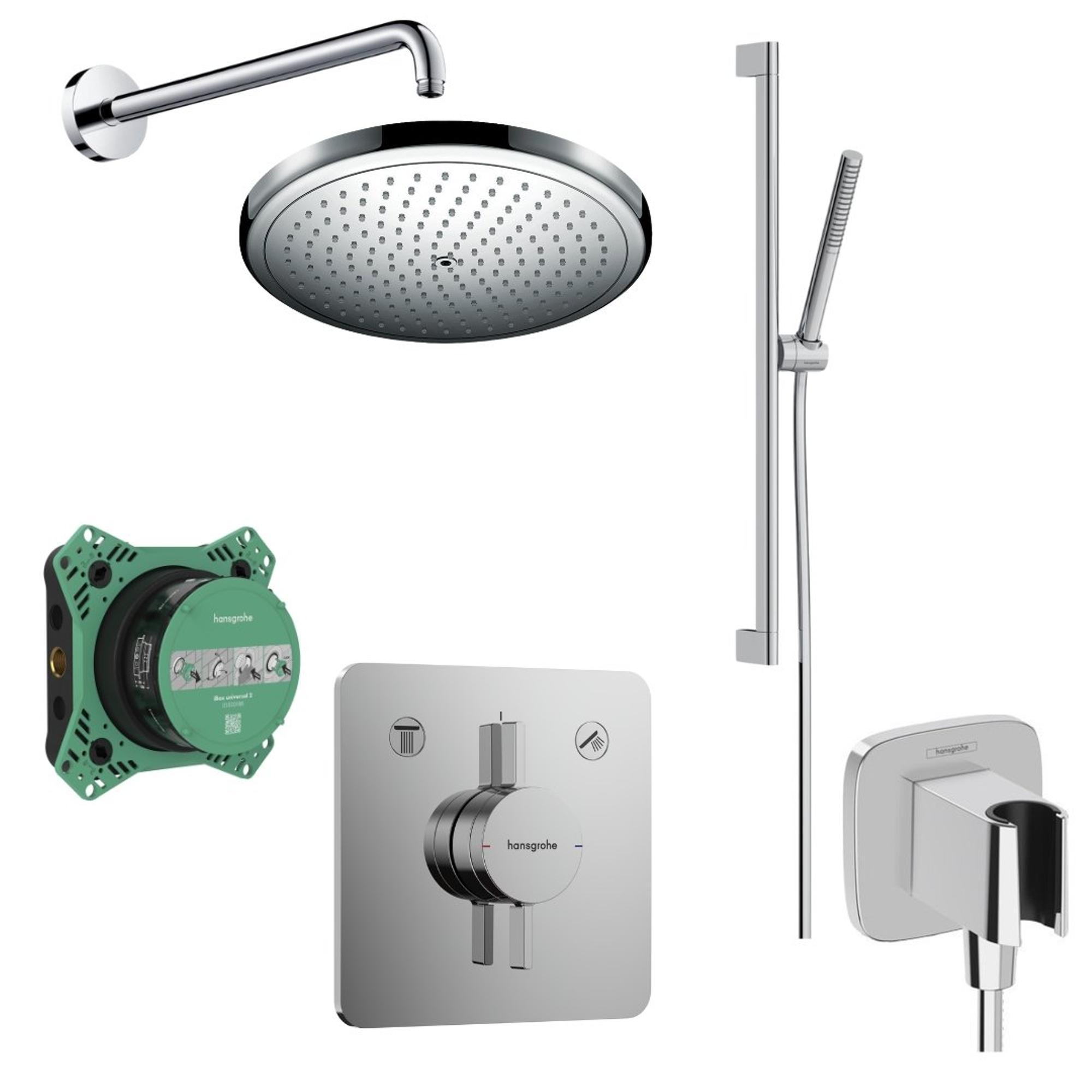 Hansgrohe Duoturn Q Doucheset - inbouwdeel - thermostaatkraan - hoofddouche - douchearm - handdouchehouder - staafhanddouche - glijstang - doucheslang - schuifstuk - chroom