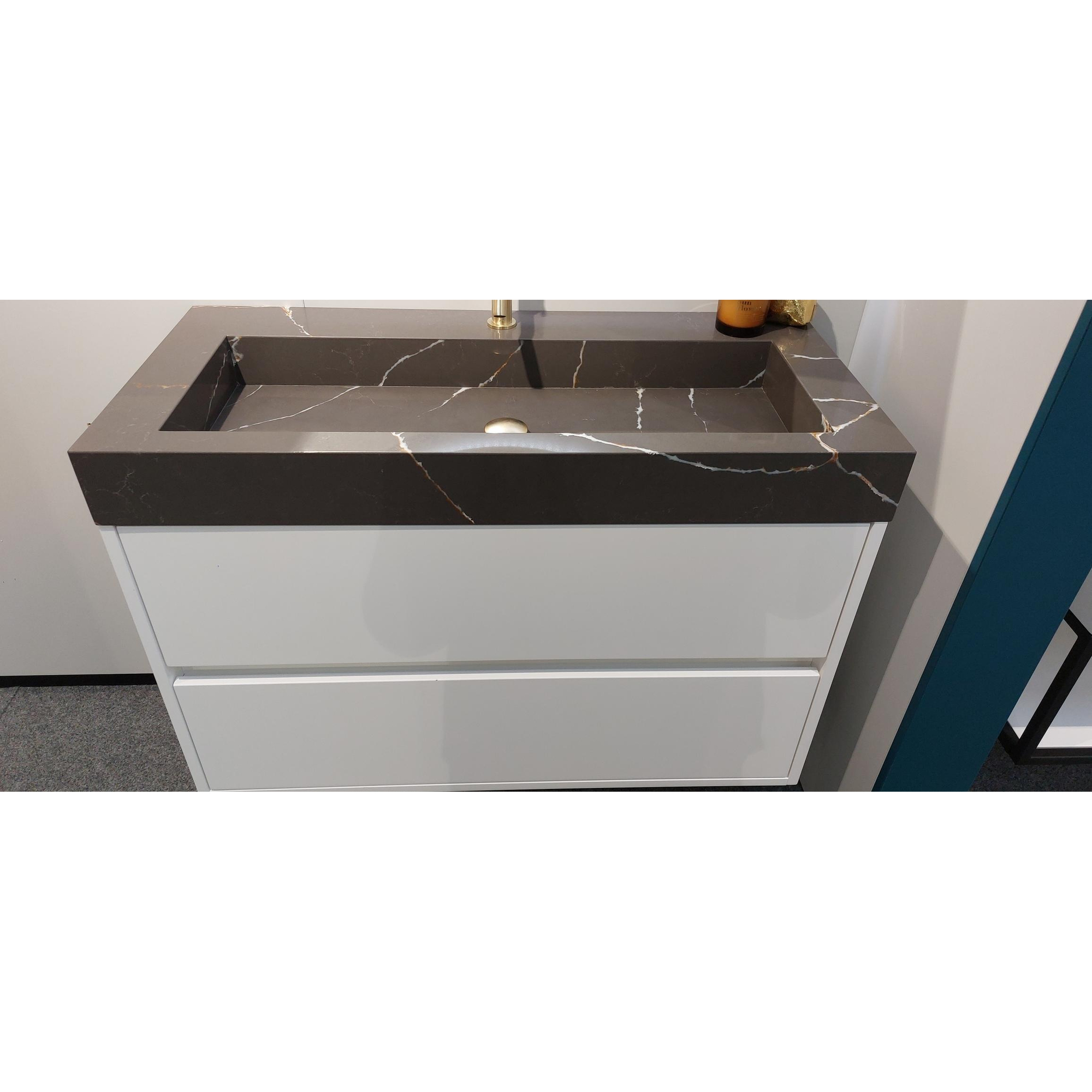 BRAUER Coral wastafel 100 met 1 kraangat Copper Brown Nexxt Wastafelonderkast 100x46x55cm 2 greeploze softclose lades 1 sifonuitsparing mat wit SHOWROOMMODEL