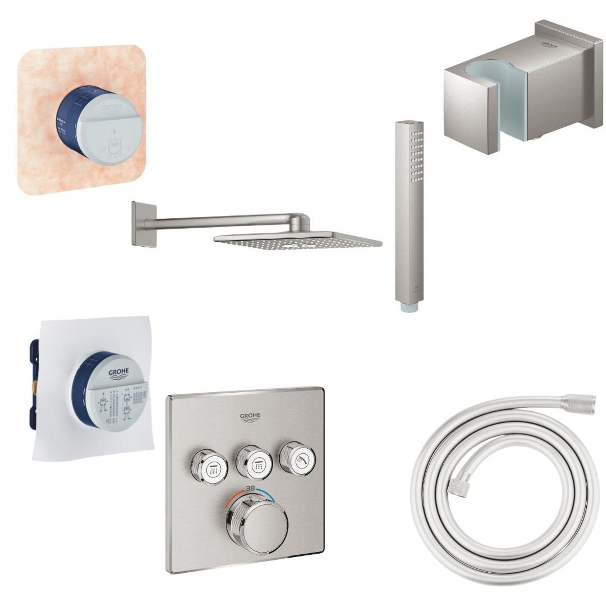 Grohe Grohtherm SmartControl Doucheset - inbouwbox - inbouwthermostaat - hoofddouche - douchearm - douchehouder - doucheslang - supersteel brushed