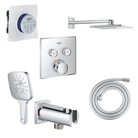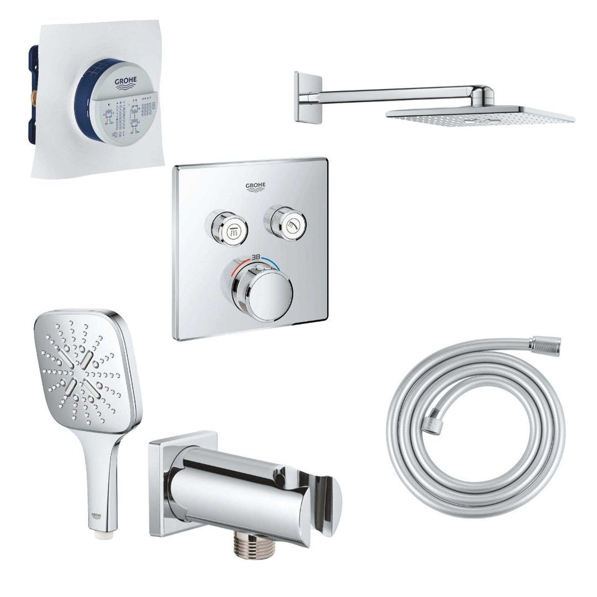 Grohe SmartControl Doucheset - inbouwthermostaat - inbouwbox - hoofddouche - handdouche - wandaansluitbocht - doucheslang - chroom