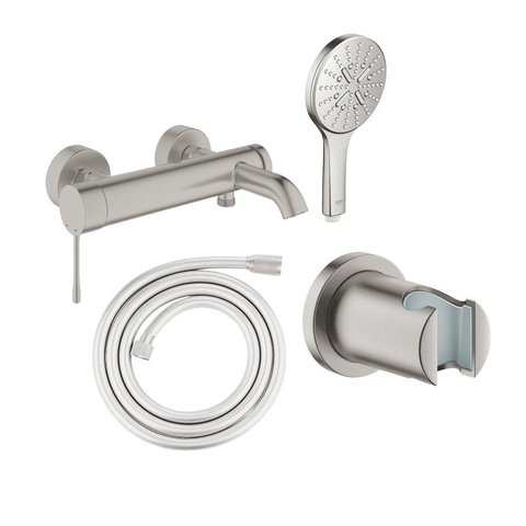 GROHE Essence Badset - badkraan - handdouche - handdouchehouder - doucheslang - supersteel brushed