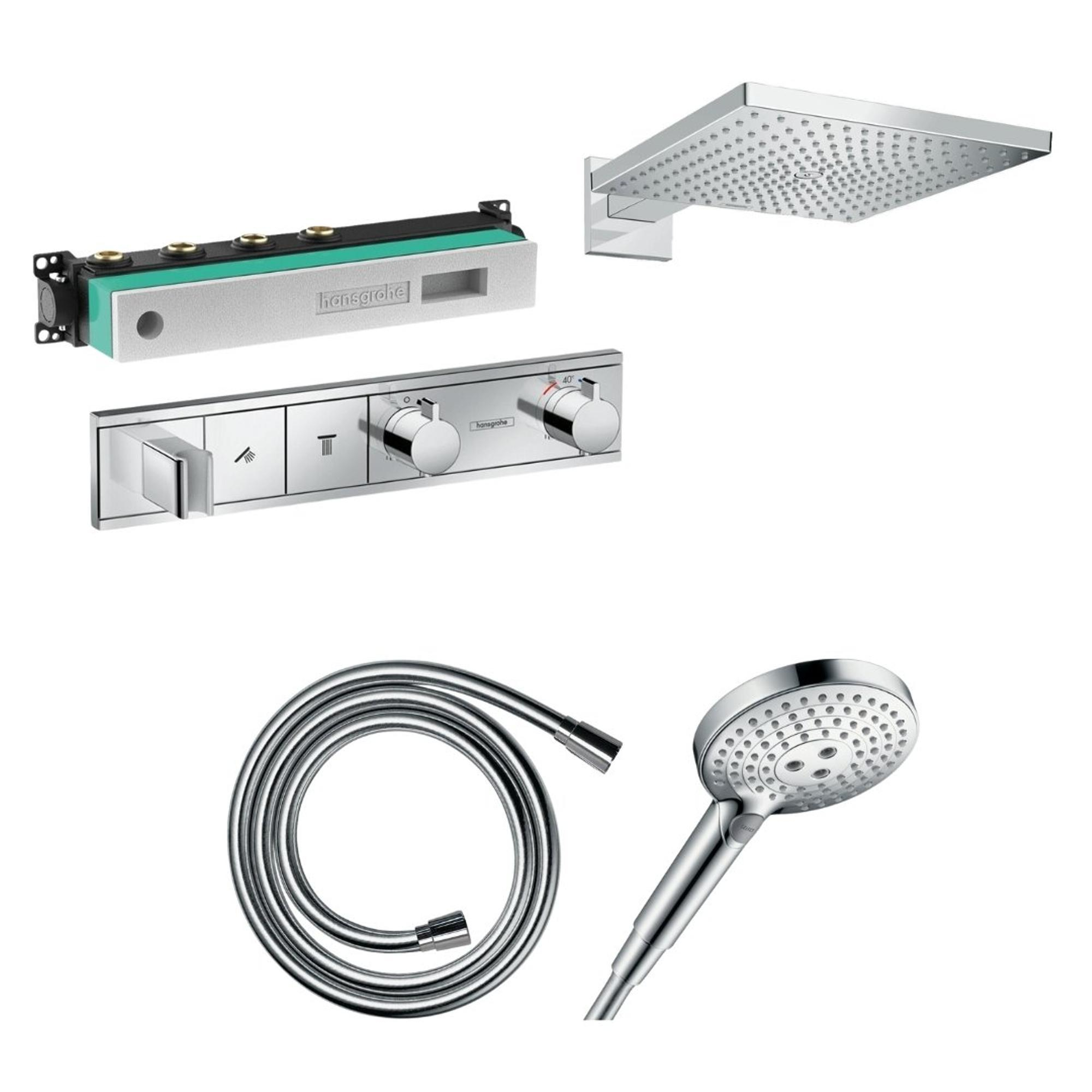 Hansgrohe Raindance E Doucheset - inbouwdeel - doucheslang - hoofddouche - douchearm - douchekraan - inbouwdeel douchekraan - chroom