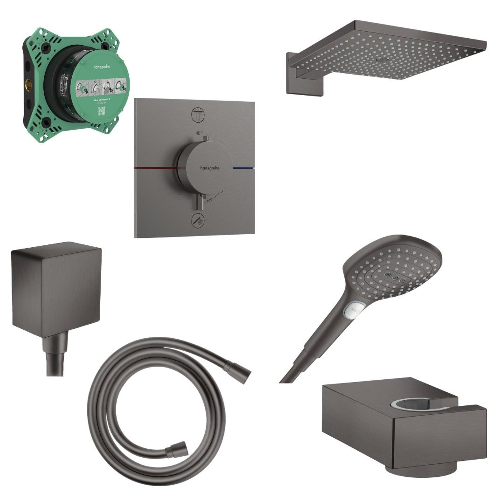 Hansgrohe Raindance Select Doucheset - hoofddouche - handdouche - doucheslang - thermostaat - inbouwdeel - muuraansluitbocht - douchehouder - black chrome