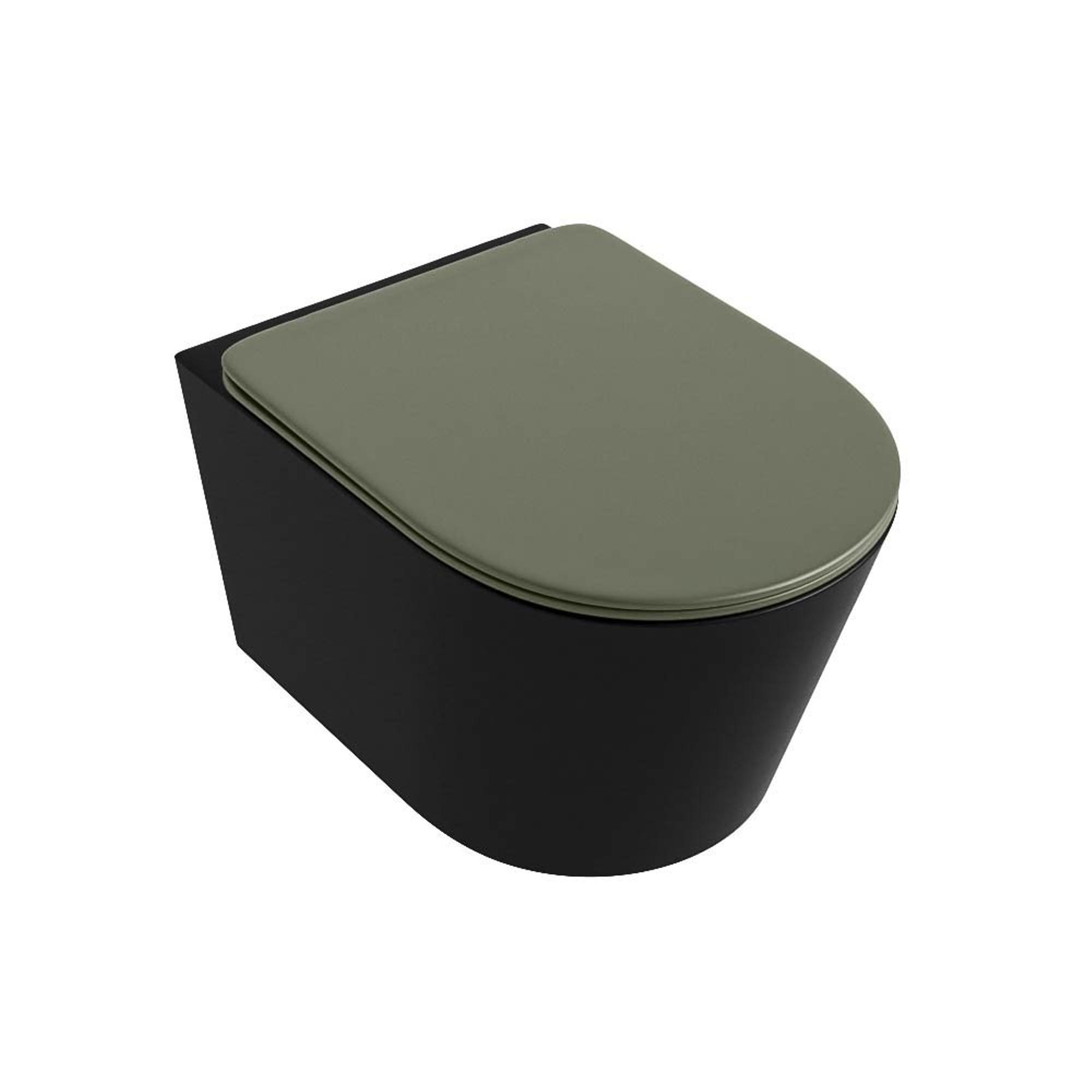 MONDIAZ LAVIE wandclosetpack - 36x53cm - diepspoel - rimless - Urban (zwart) - softclose - quick-release - toiletzitting - Army (groen)