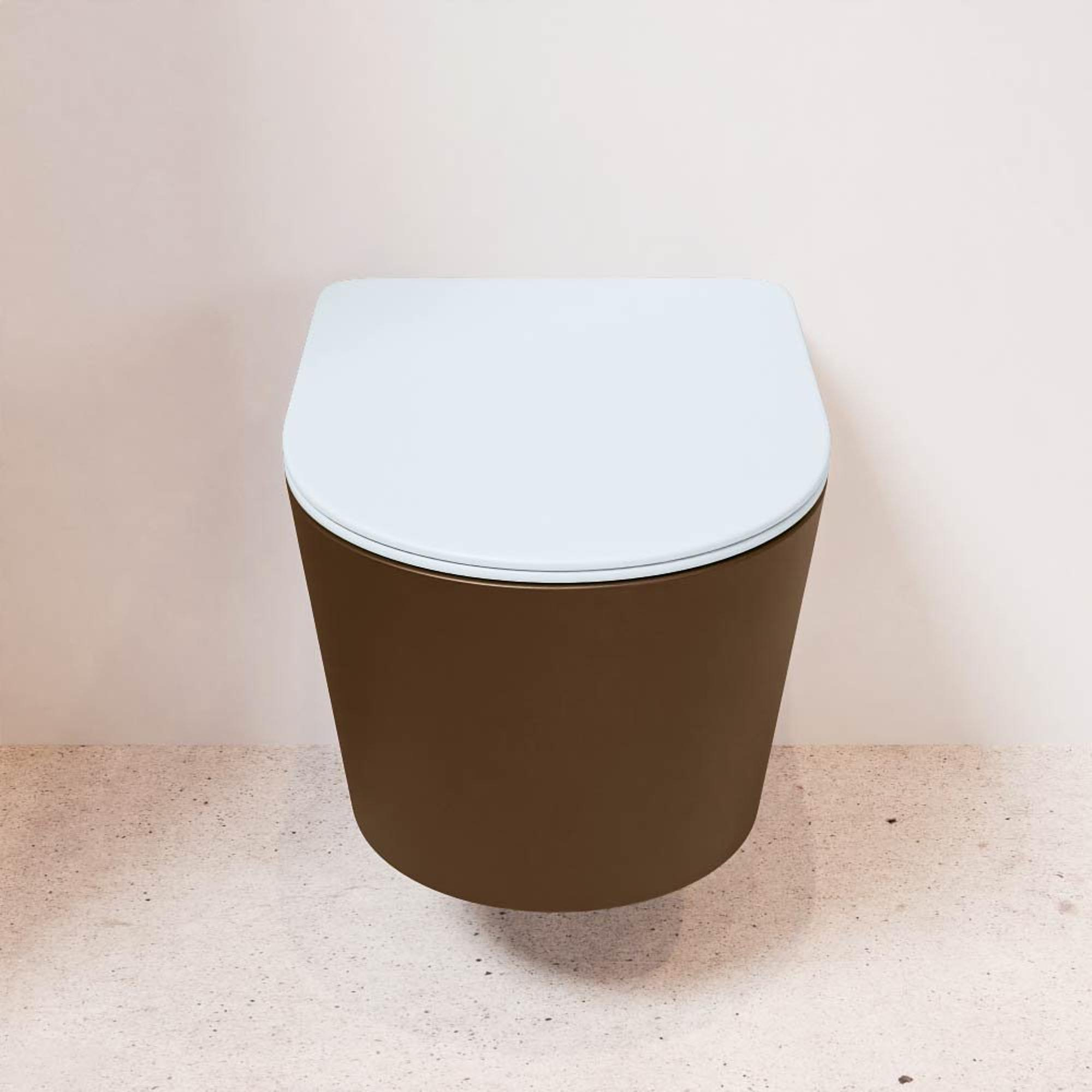 MONDIAZ LAVIE wandclosetpack - 36x53cm - diepspoel - rimless - Rust (bruin) - softclose - quick-release - toiletzitting - clay (blauw)