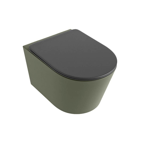 MONDIAZ LAVIE wandclosetpack - 36x53cm - diepspoel - rimless - Army (groen) - softclose - quick-release - toiletzitting - Dark grey (grijs)