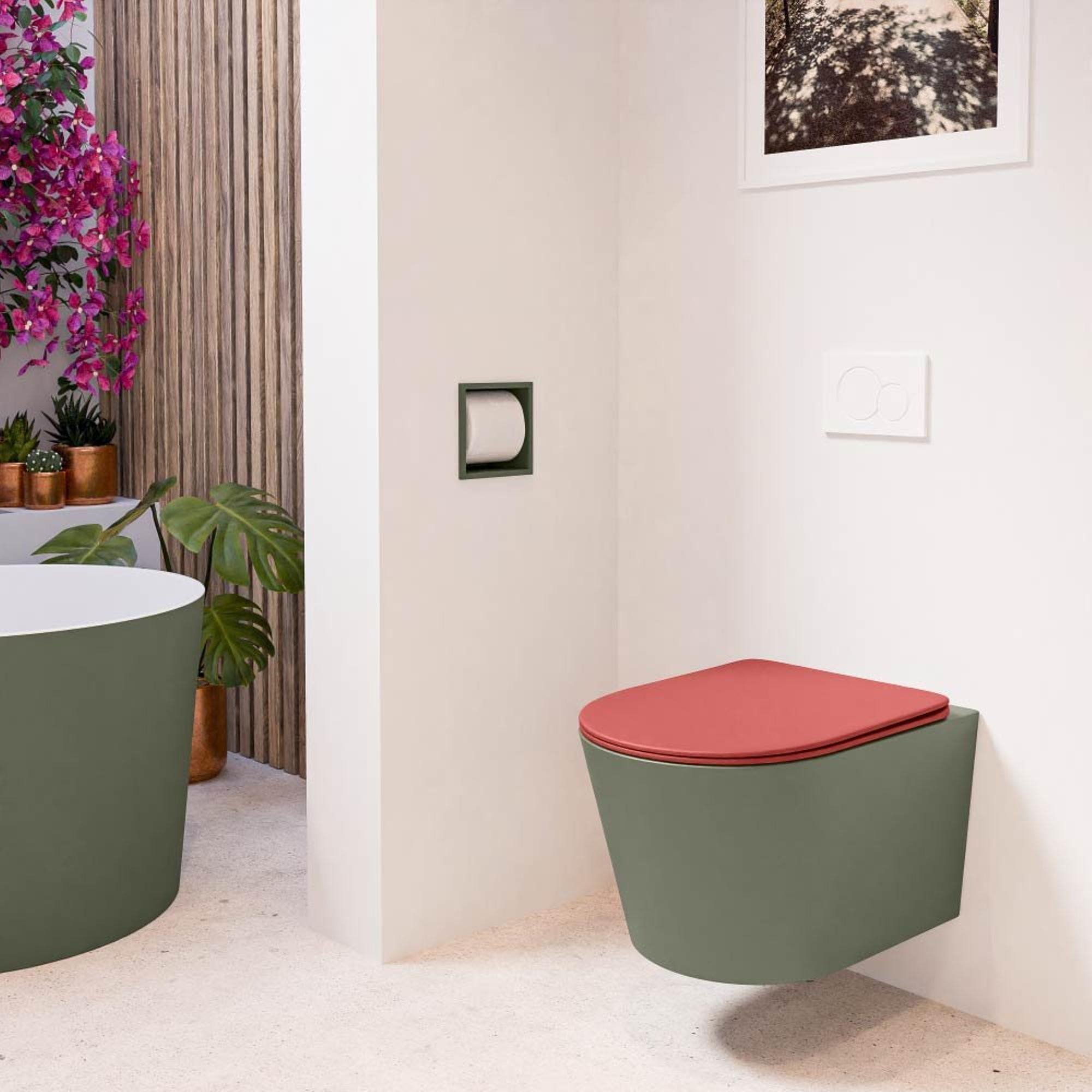 MONDIAZ LAVIE wandclosetpack - 36x53cm - diepspoel - rimless - Army (groen) - softclose - quick-release - toiletzitting - Fire (rood)