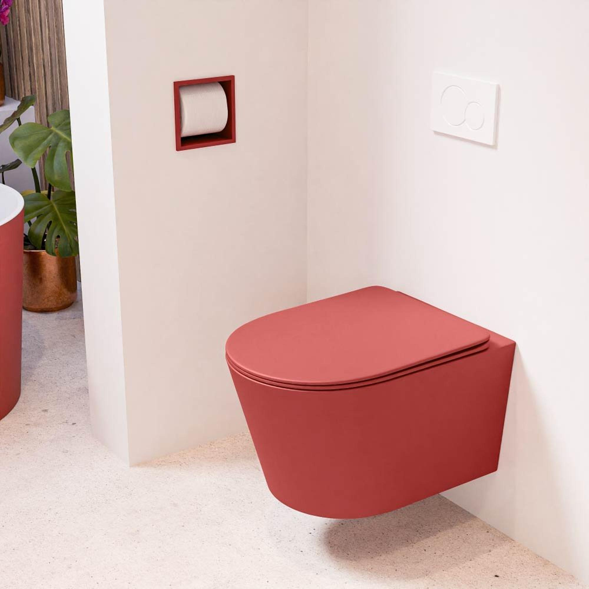 MONDIAZ LAVIE wandclosetpack - 36x53cm - diepspoel - rimless - Fire (rood) - softclose - quick-release - toiletzitting - Fire (rood)