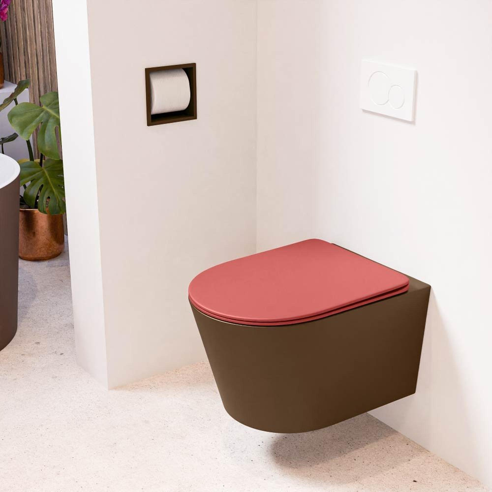 MONDIAZ LAVIE wandclosetpack - 36x53cm - diepspoel - rimless - Rust (bruin) - softclose - quick-release - toiletzitting - Fire (rood)