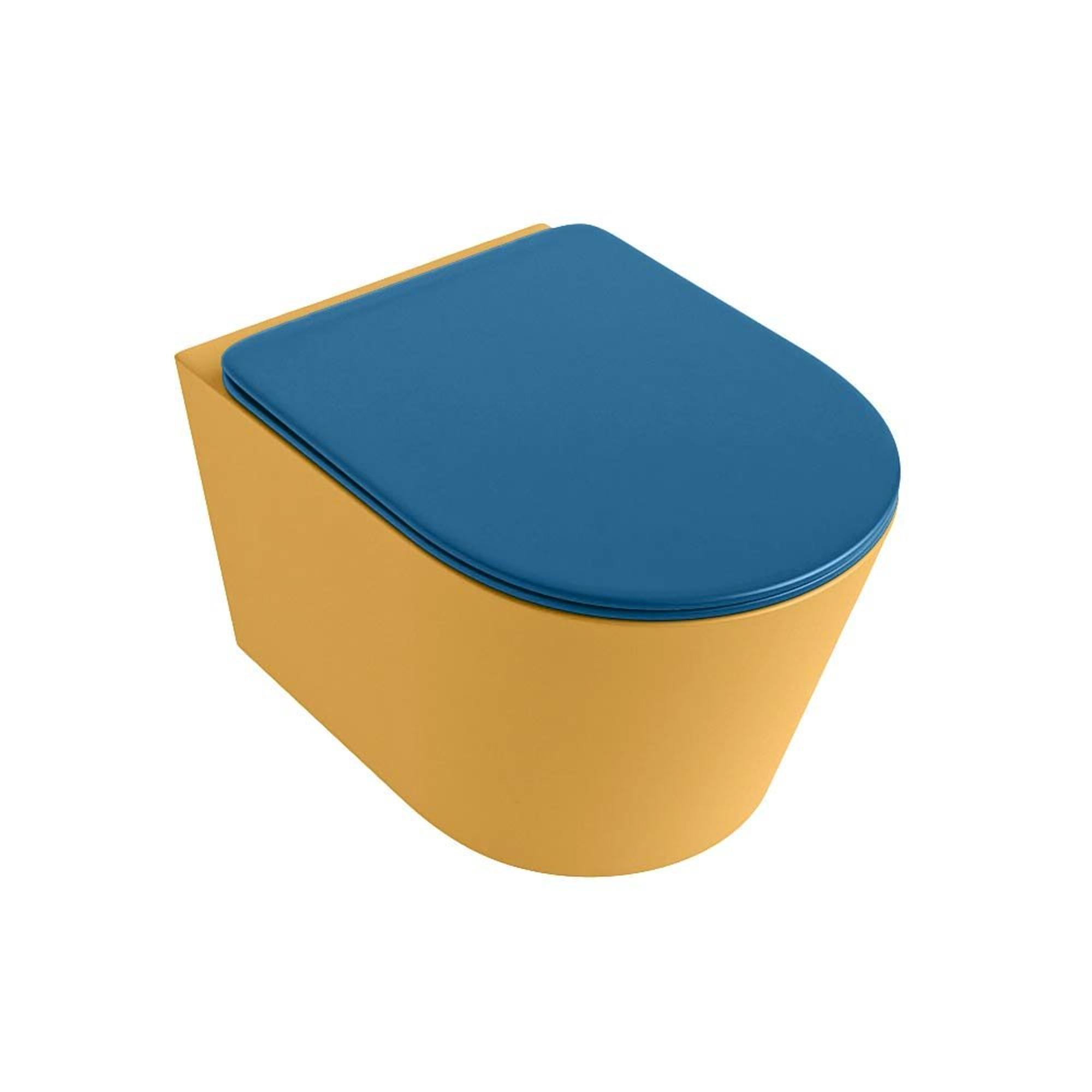 MONDIAZ LAVIE wandclosetpack - 36x53cm - diepspoel - rimless - Ocher (geel) - softclose - quick-release - toiletzitting - Jeans (blauw)