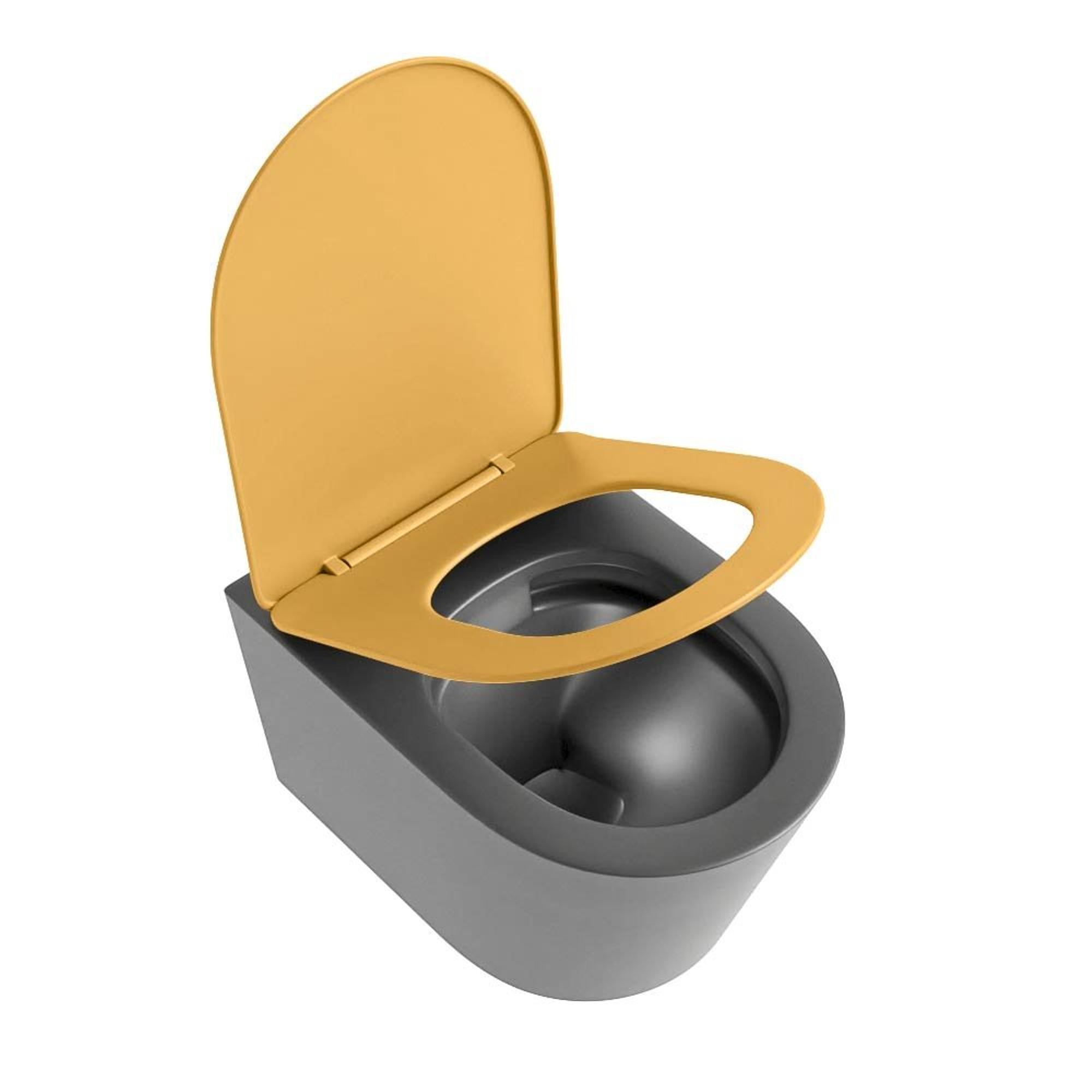 MONDIAZ LAVIE wandclosetpack - 36x53cm - diepspoel - rimless - Dark grey (grijs) - softclose - quick-release - toiletzitting - Ocher (geel)