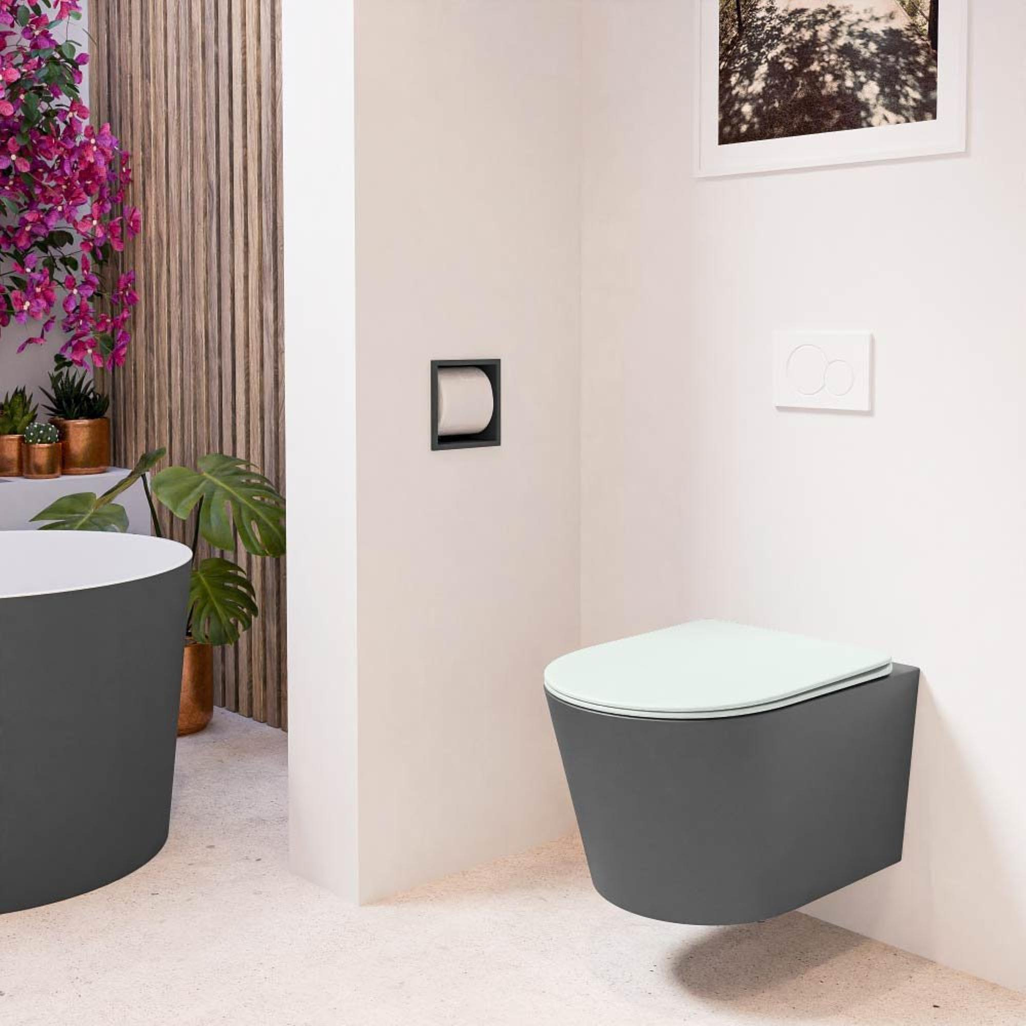 Ook de afdekkapjes, zijn perfect op kleur afgestemd met de toiletpot. Deze uniforme kleuring zorgt voor een esthetisch samenhangend geheel, ideaal voor moderne badkamerontwerpen.