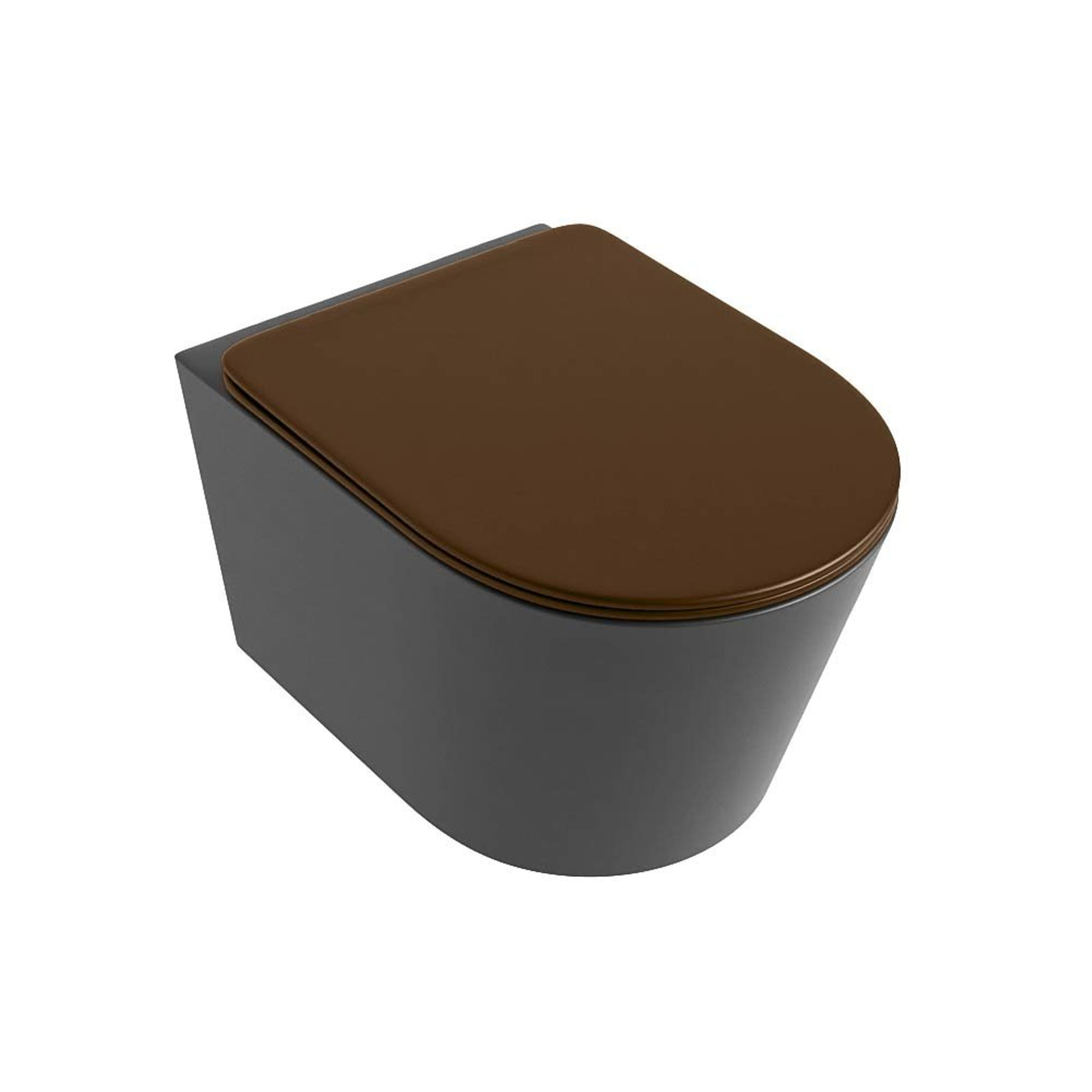 MONDIAZ LAVIE wandclosetpack - 36x53cm - diepspoel - rimless - Dark grey (grijs) - softclose - quick-release - toiletzitting - Rust (rood)
