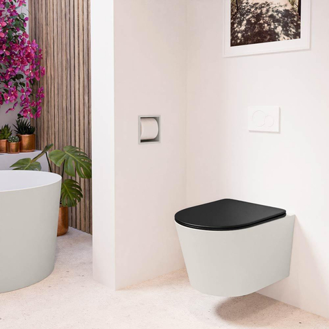 Ook de afdekkapjes, zijn perfect op kleur afgestemd met de toiletpot. Deze uniforme kleuring zorgt voor een esthetisch samenhangend geheel, ideaal voor moderne badkamerontwerpen.