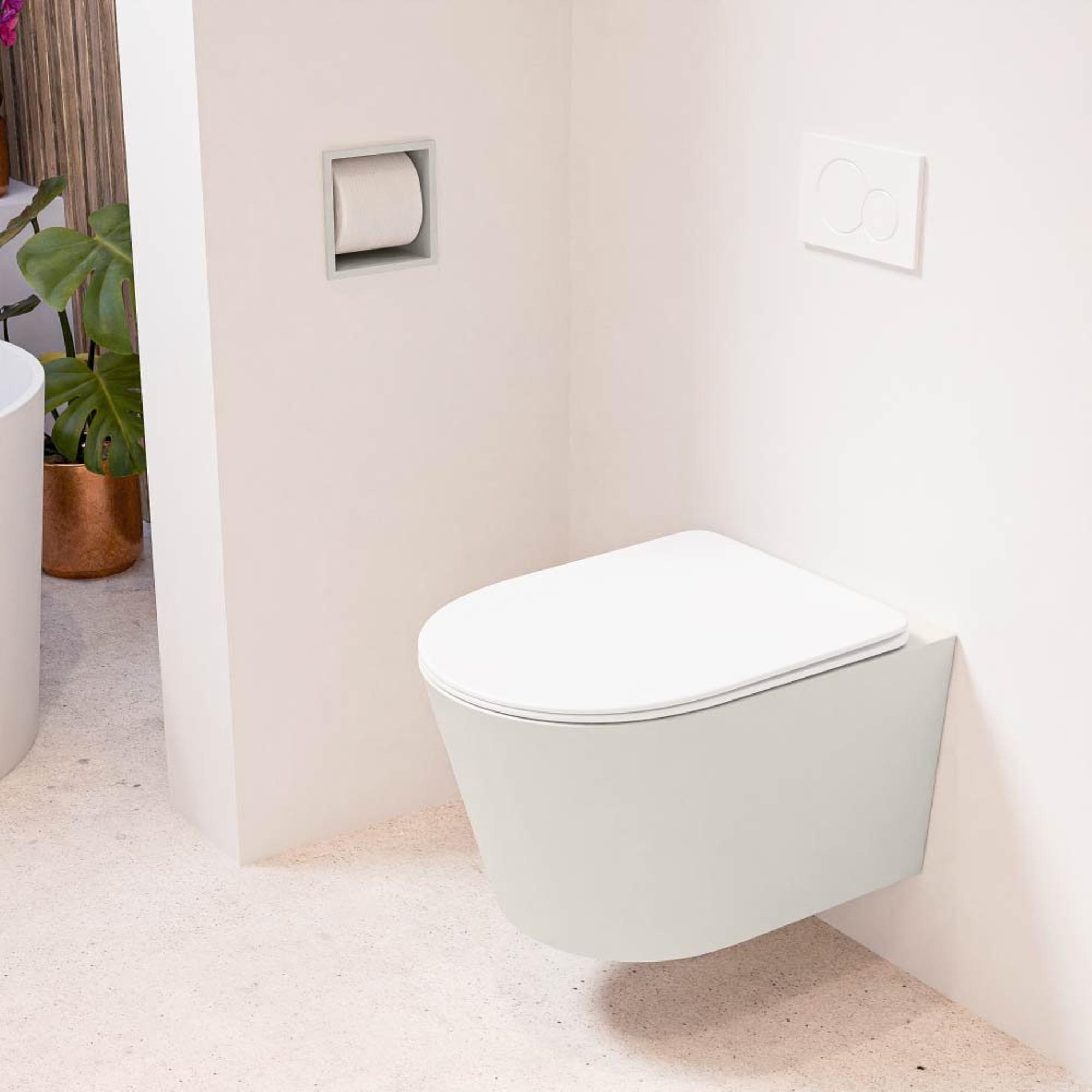 Ook de afdekkapjes, zijn perfect op kleur afgestemd met de toiletpot. Deze uniforme kleuring zorgt voor een esthetisch samenhangend geheel, ideaal voor moderne badkamerontwerpen.