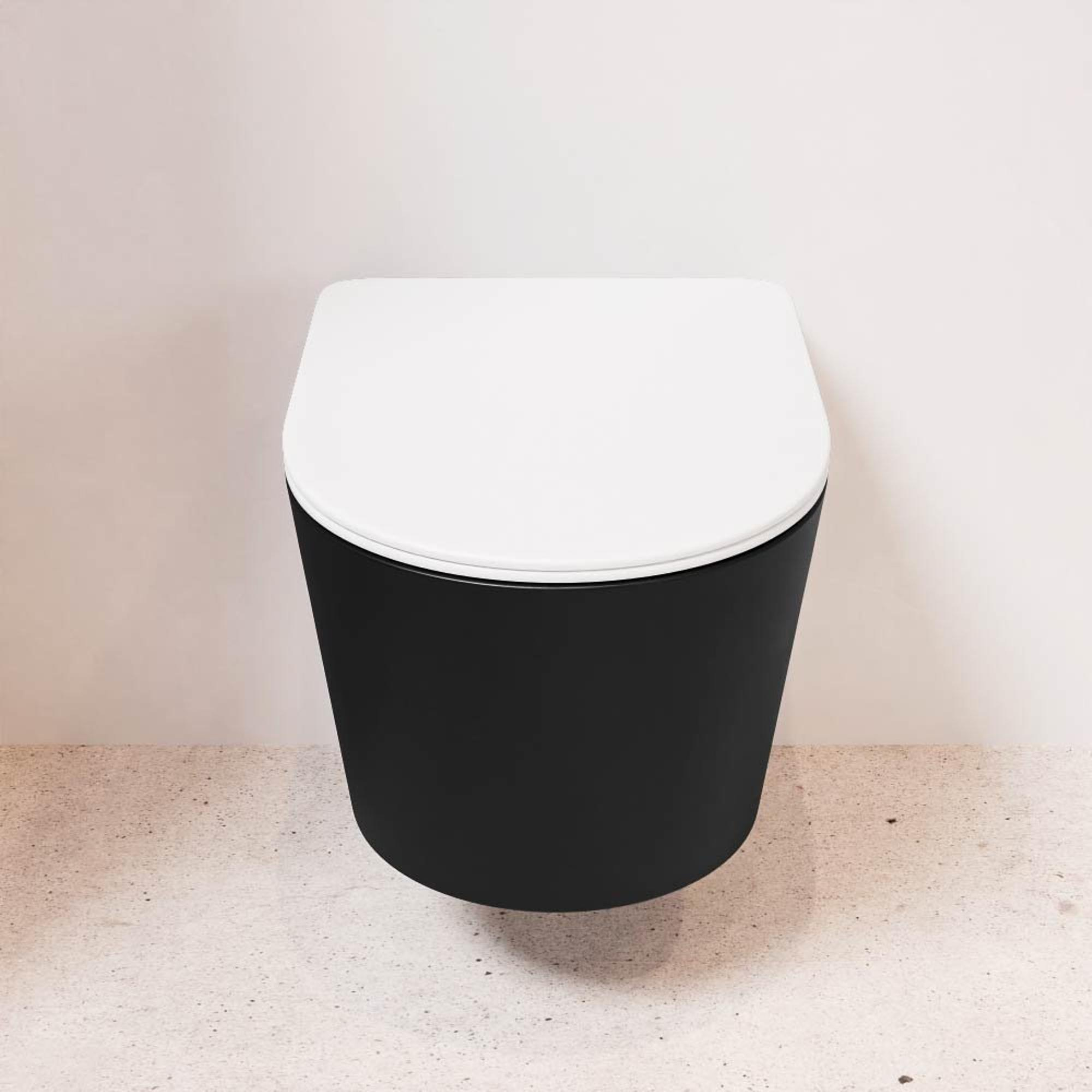 MONDIAZ LAVIE wandclosetpack - 36x53cm - diepspoel - rimless - Urban (zwart) - softclose - quick-release - toiletzitting - Talc (offwhite)
