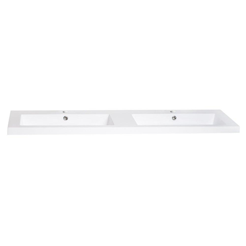 Saniclass Foggia Meubelwastafel - 160x46x5cm - overloop - 2 wasbakken links rechts - 2 kraangaten - mineraalmarmer - glanzend wit