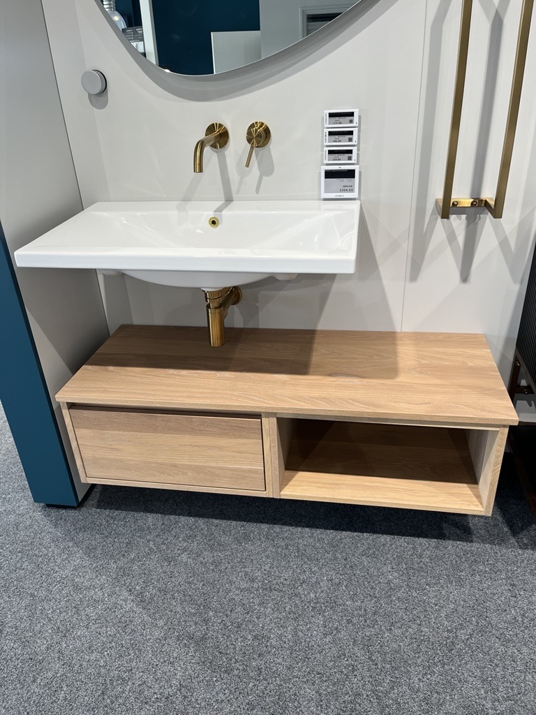 BRAUER badkamermeubelset 120x30x45.5cm met topbblad en los hangende keramieken wastafel zonder kraangaten geborsteld lamel SHOWROOMMODEL