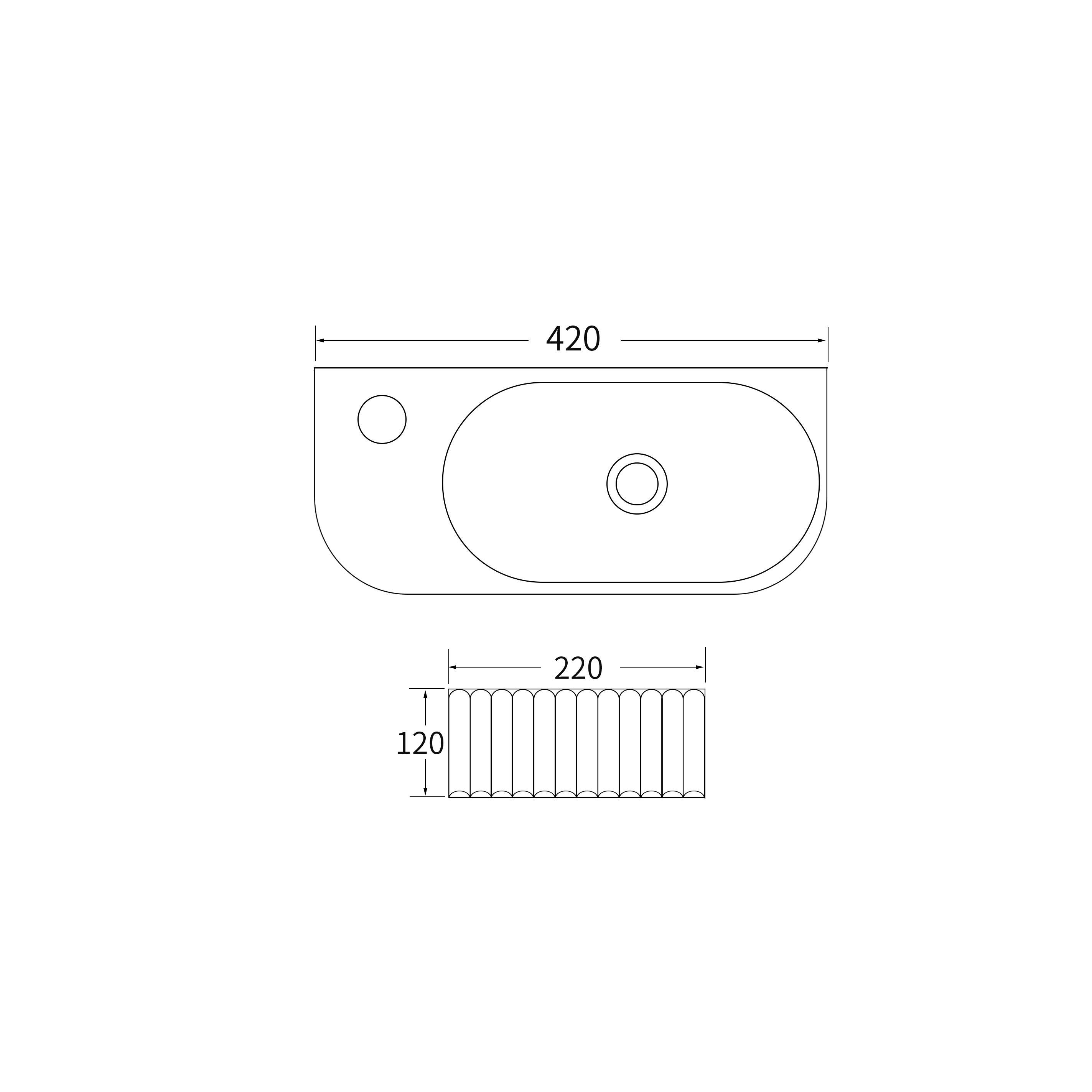 Dit fontein straalt een onmiskenbare stijl uit die elke badkamer transformeert tot een chique en eigentijdse ruimte. Het geribbelde en halfronde ontwerp voegt een vleugje elegantie toe, terwijl het kraangat zorgt voor praktisch gebruiksgemak zonder in te boeten aan esthetiek.
