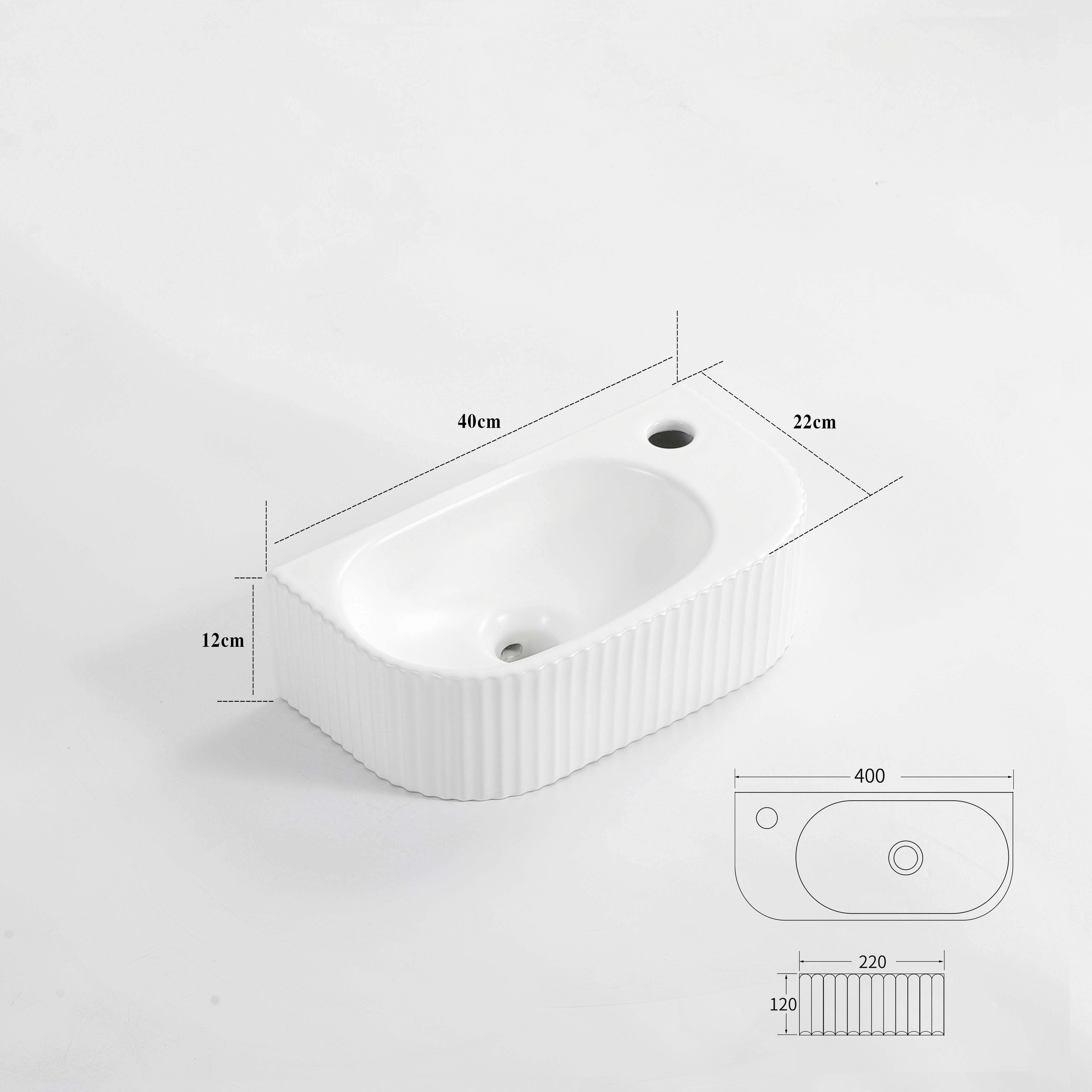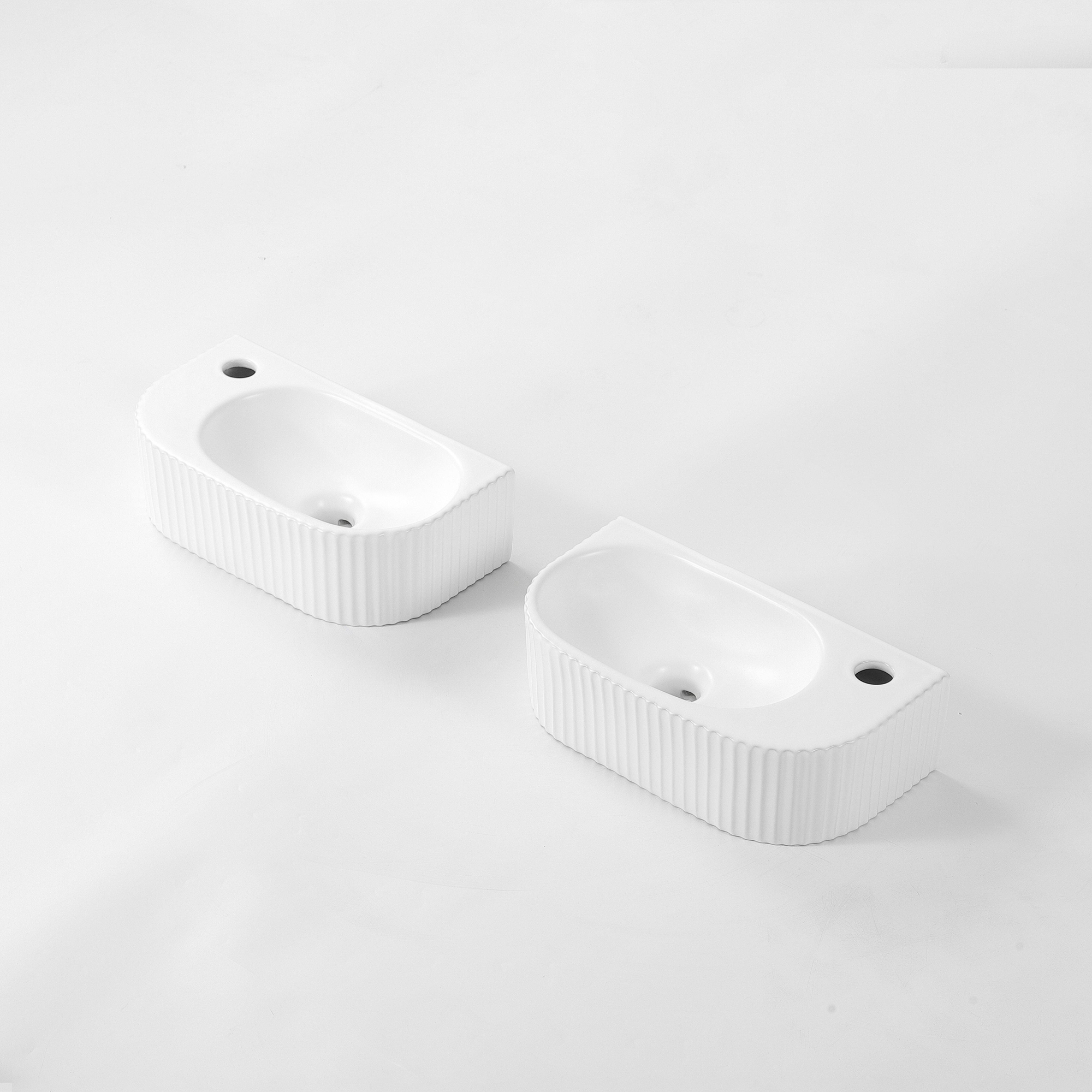 QeramiQ Blend Fontein - 40x22x12cm - Rechts - Geribbeld - halfrond - 1 kraangat - Keramiek - Wit Mat
