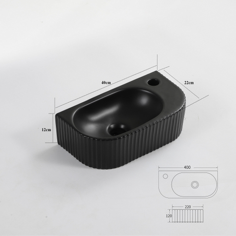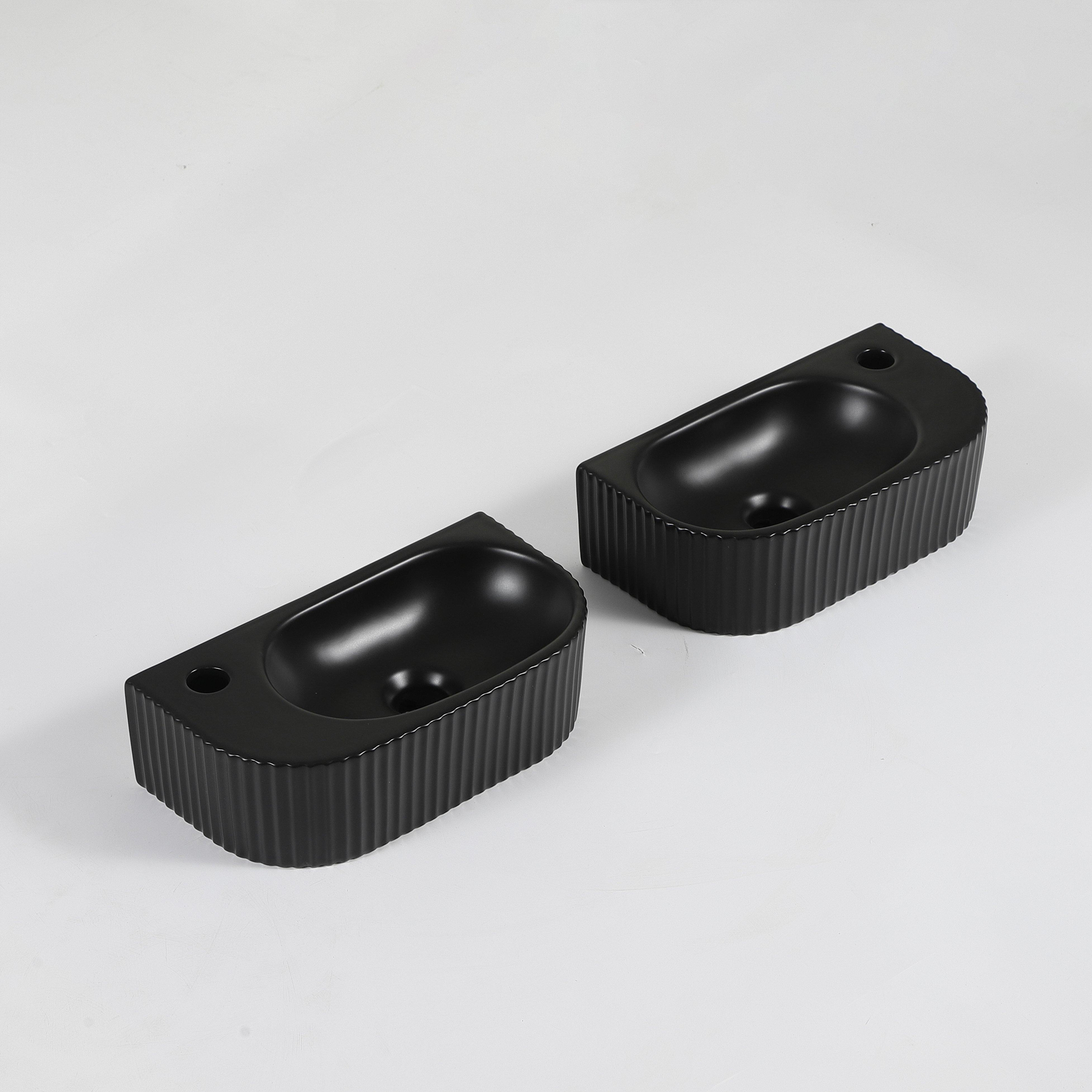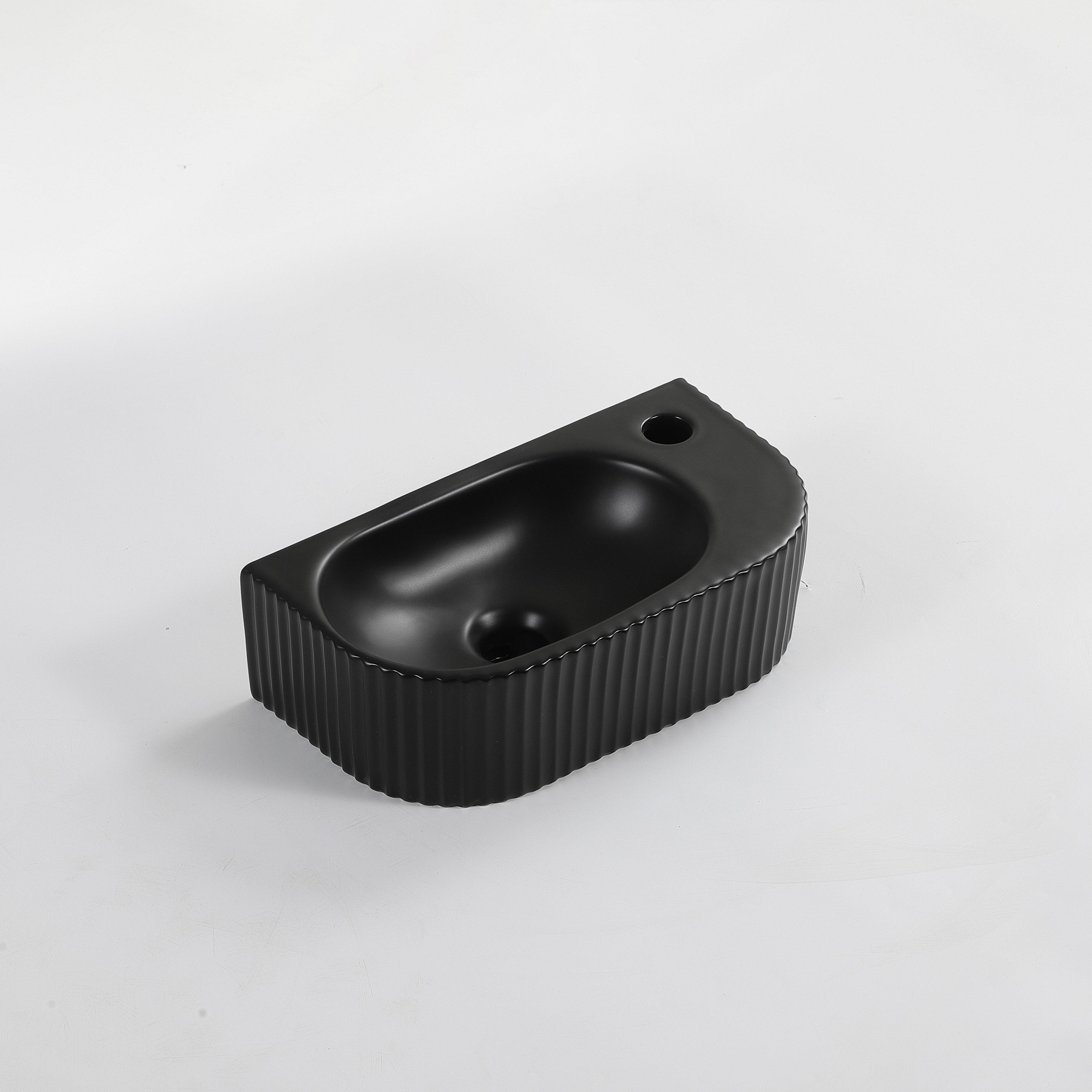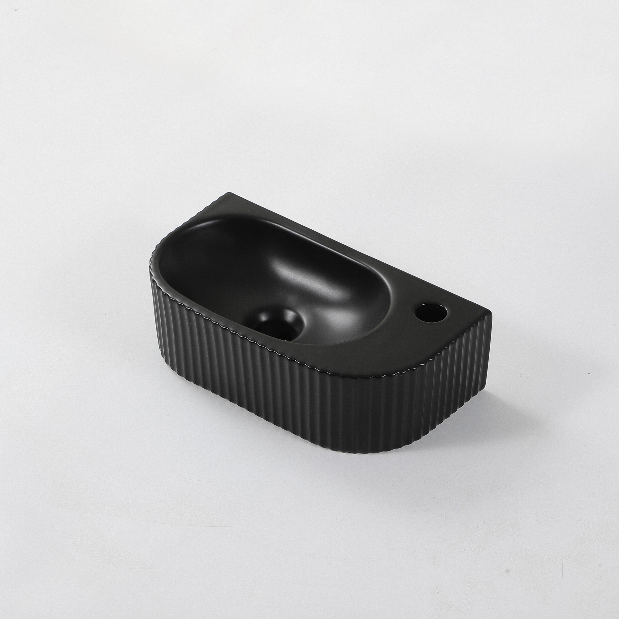 QeramiQ Blend Fontein - 40x22x12cm - Rechts - Geribbeld - halfrond - 1 kraangat - Keramiek - Zwart mat