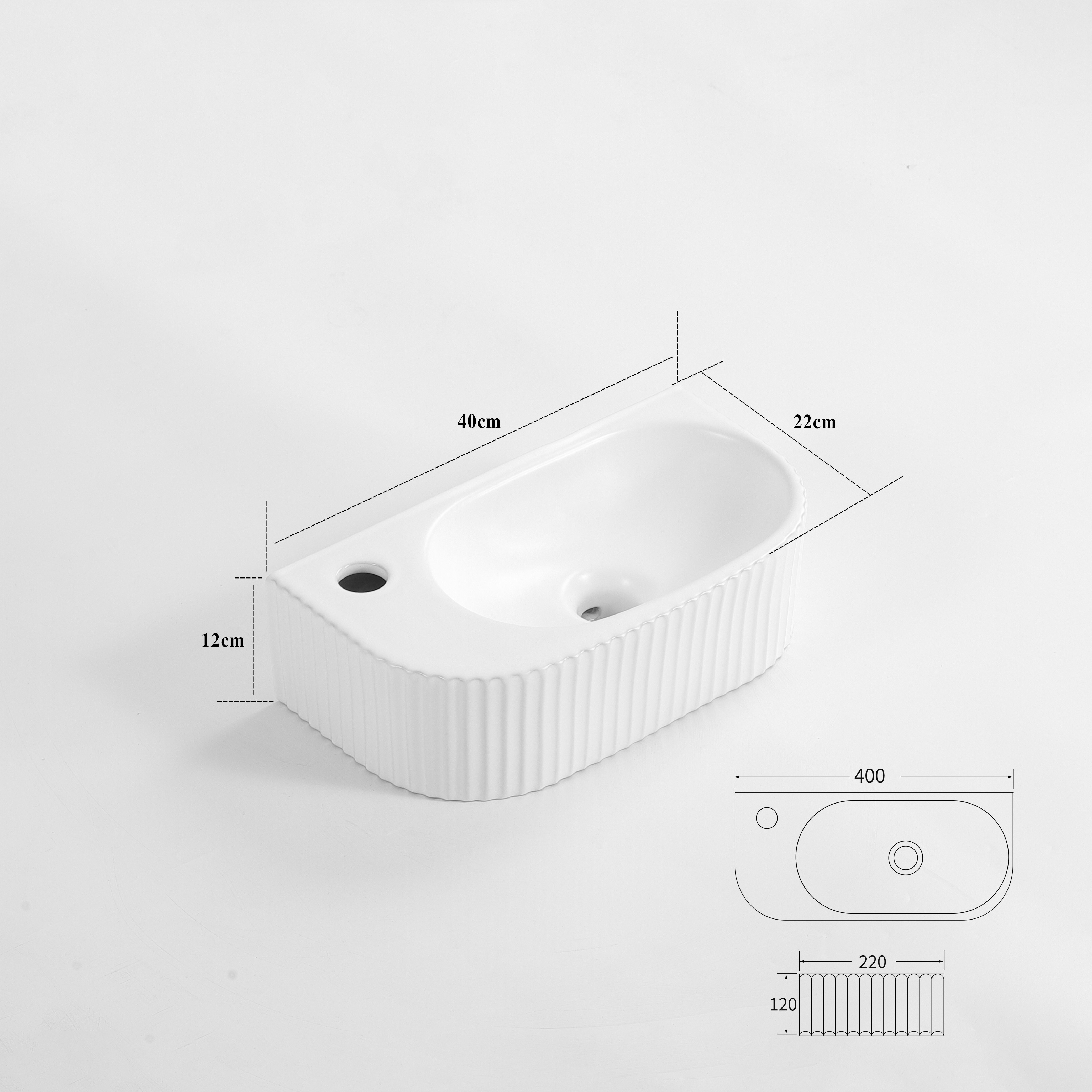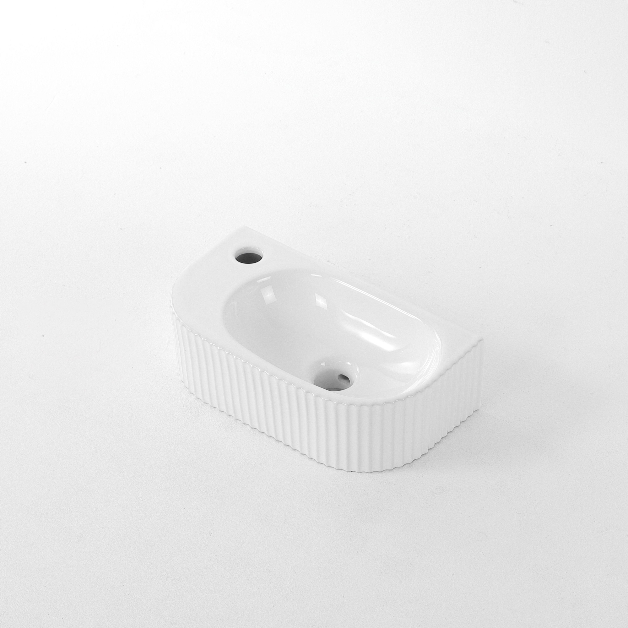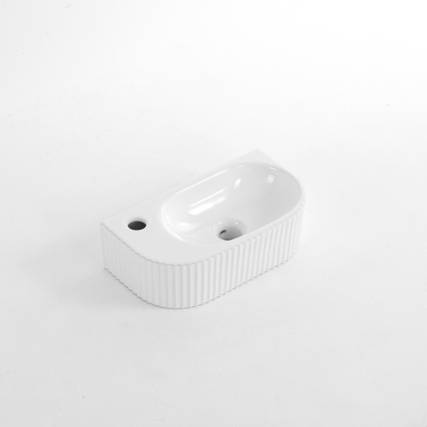 QeramiQ Blend Fontein - 40x22x12cm - Links - Geribbeld - halfrond - 1 kraangat - Keramiek - Wit Glans
