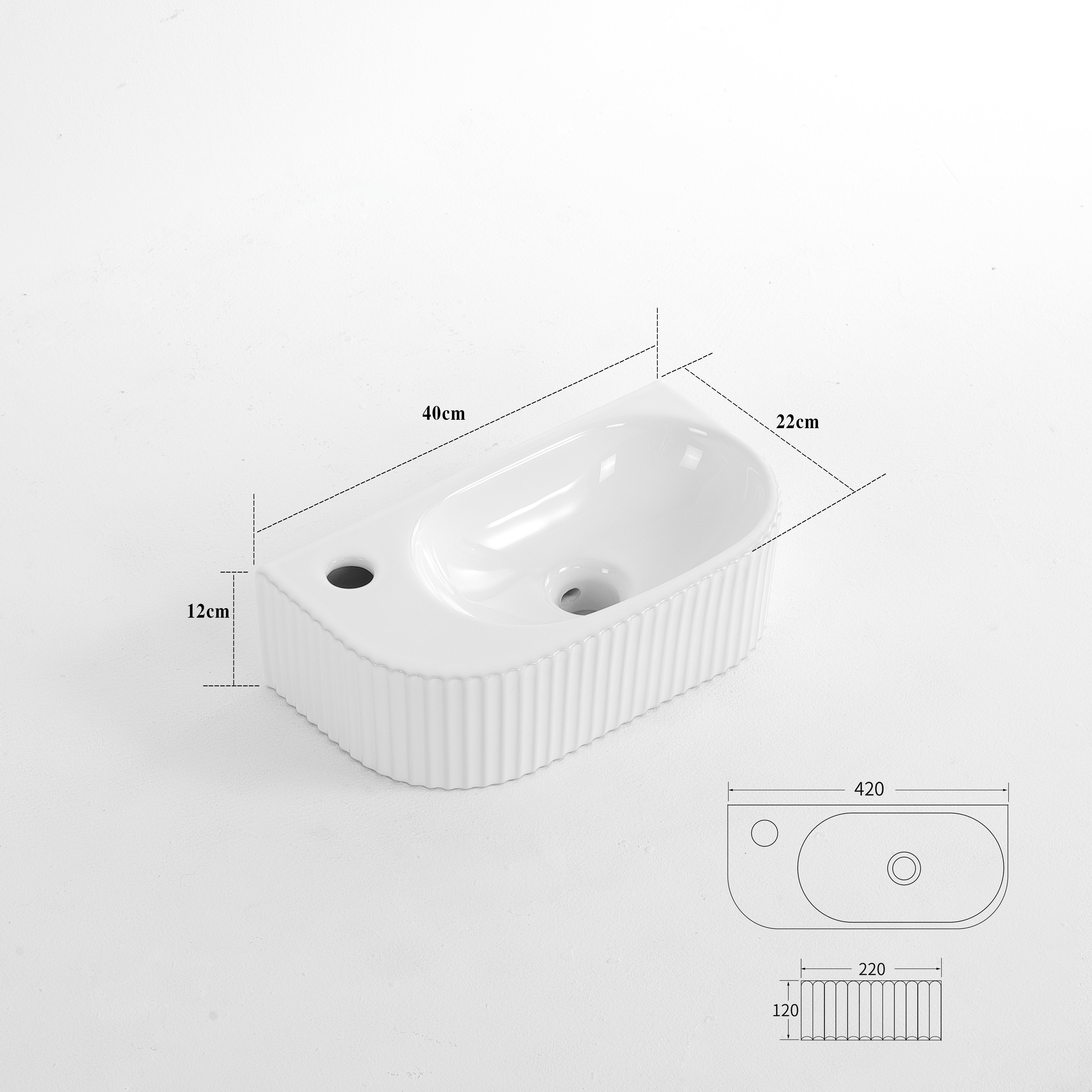 Naast zijn esthetische aantrekkingskracht is deze fontein ook uiterst functioneel. Met één kraangat biedt het gemak en efficiëntie in gebruik. De afmetingen van 40x22x12cm maken het een ideale keuze voor kleinere badkamers of toiletruimtes, waar ruimte een kostbaar goed is.