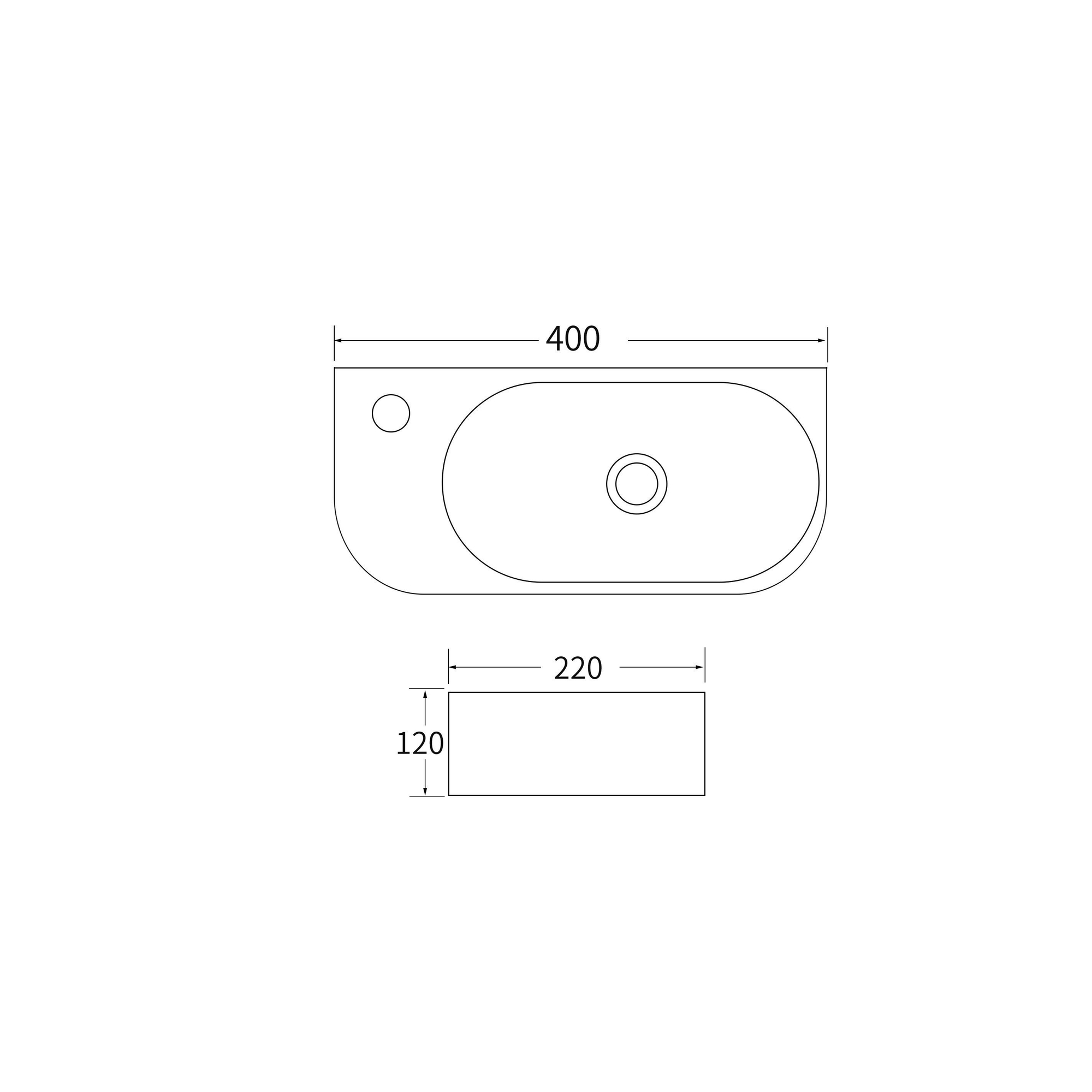 QeramiQ Pure Fontein - 40x22x12cm - Rechts - Glad - halfrond - 1 kraangat - Keramiek - Wit Mat