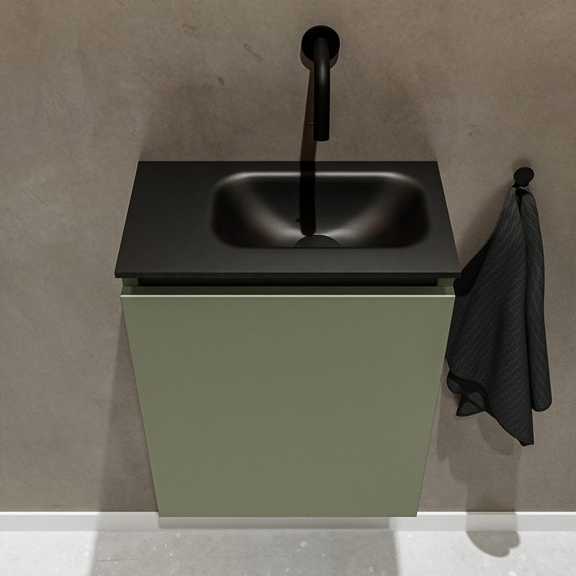 MONDIAZ TURE Fonteinset - 40x23x50cm - 0 kraangaten - 1 deur - army mat - Wasbak rechts - Solid Surface Zwart SHOWROOMMODEL