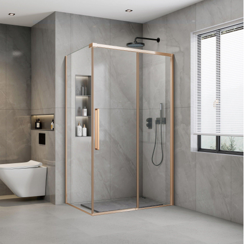 Aqua Vista Lokla Cuadra zijwand - 90x200cm - incl. montageset - geborsteld koper