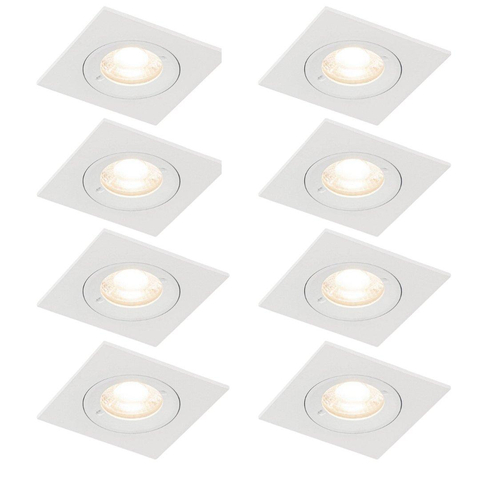 QAZQA Xena inbouwspot - set van 8 - 8x8cm - IP44 - vierkant - mat wit