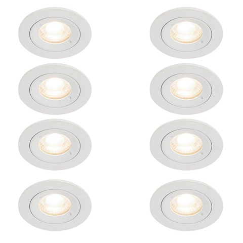 QAZQA Xena inbouwspot - set van 8 - 8x8cm - IP44 - rond - mat wit