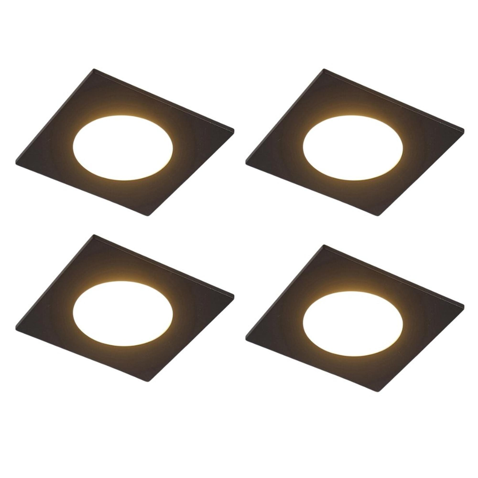 QAZQA Simply Inbouwspot - set van 4 - 9x9cm - incl. LED - 3 staps dimbaar - IP44 - vierkant - mat zwart