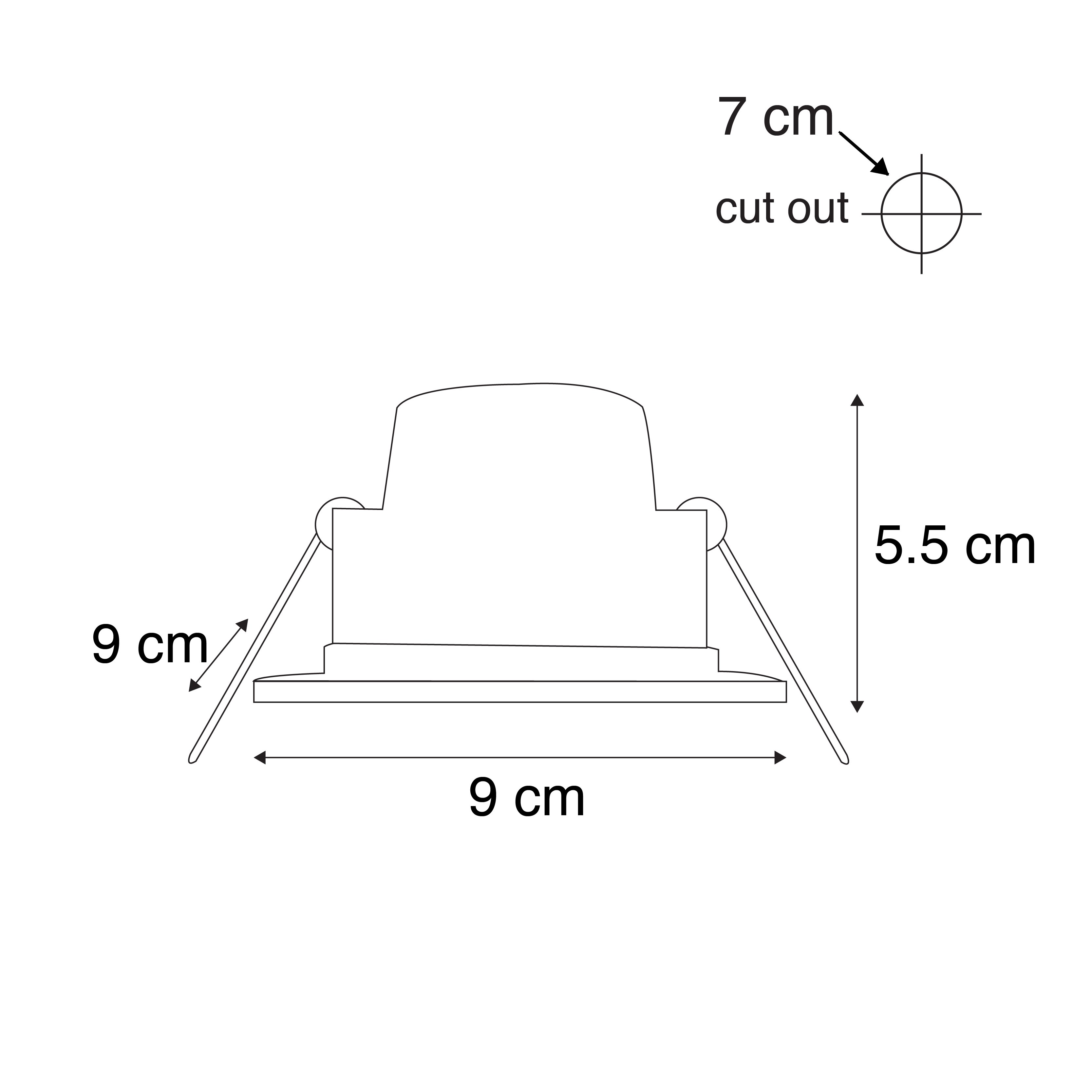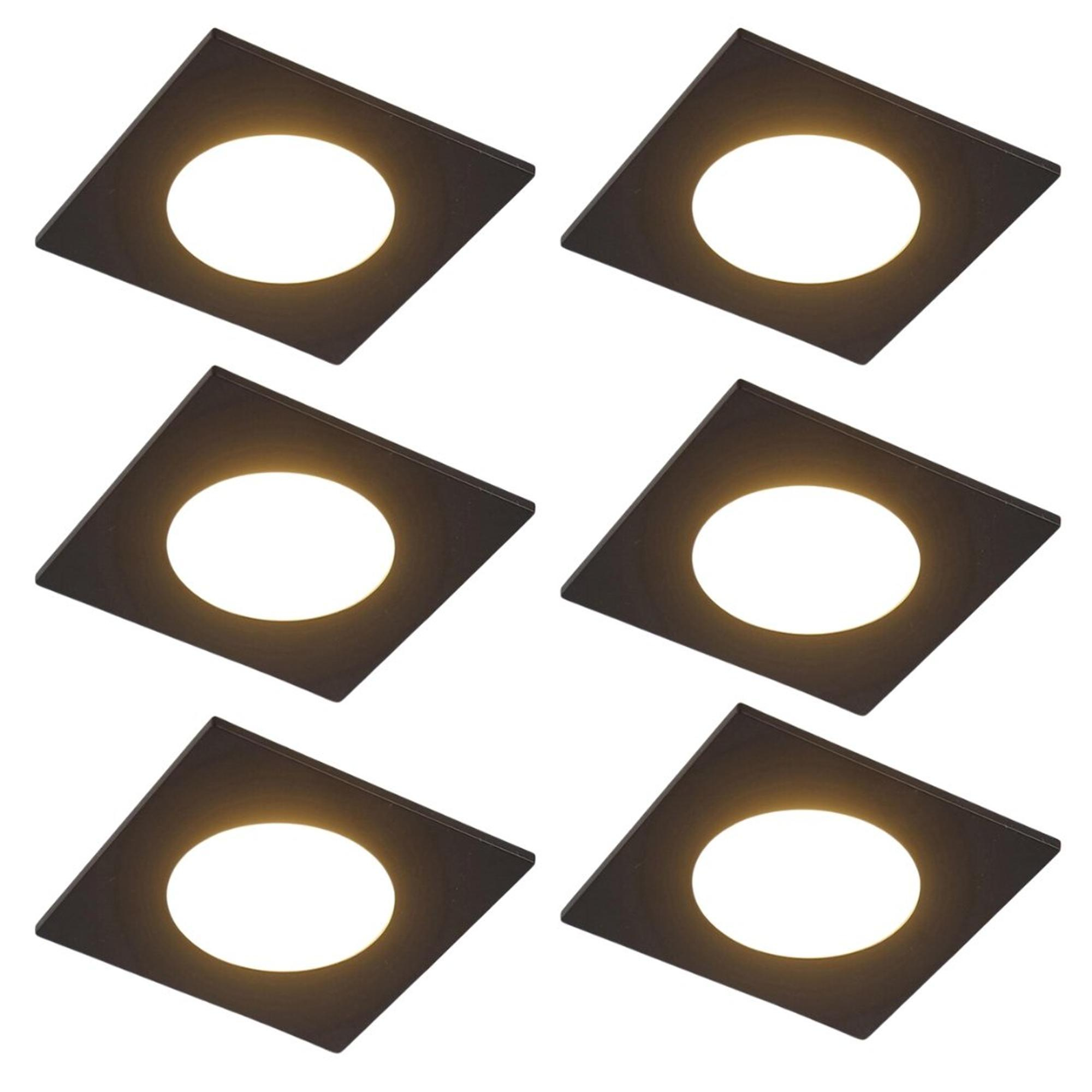 QAZQA Simply Inbouwspot - set van 6 - 9x9cm - incl. LED - 3 staps dimbaar - IP44 - vierkant - mat zwart
