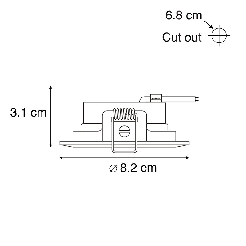 QAZQA Ulo Inbouwspot - set van 2 - 8.2x8.2cm - incl. LED - 3 staps dimbaar - IP44 - rond - mat wit Ulo is een tijdloze inbouwspot die perfect te gebruiken is als basisverlichting in de woonkamer. slaapkamer of eetkamer. Hij heeft een diameter van 8.2 cm en een hoogte van 3 cm. De inbouw heeft een diameter van 6.8 cm en een diepte van 3.1 cm. De spot is gemaakt van kunststof met een witte uitstraling. Ulo wordt geleverd inclusief niet-vervangbare LED verlichting (max. 5 Watt). Hij heeft een waarde van 2700 Kelvin en 330 lumen. wat er voor zorgt dat het een echte krachtpatser is! Gemiddeld gaat het LED 25.000 branduren mee en geeft dus langdurig plezier. De lamp is voorzien van een 3 staps dimmer. hiermee kun je extra sfeer creëren in de ruimte. Wanneer je één keer op de schakelaar duwt krijg je 30% licht (sfeerlicht). als je nog een keer duwt krijg je 60% licht. Bij een derde keer krijg je 100% licht (functioneel. wit licht). Spots zijn perfect te gebruiken als basisverlichting en met zo’n mooie spot als Ulo is het ook nog aangenaam om naar te kijken.