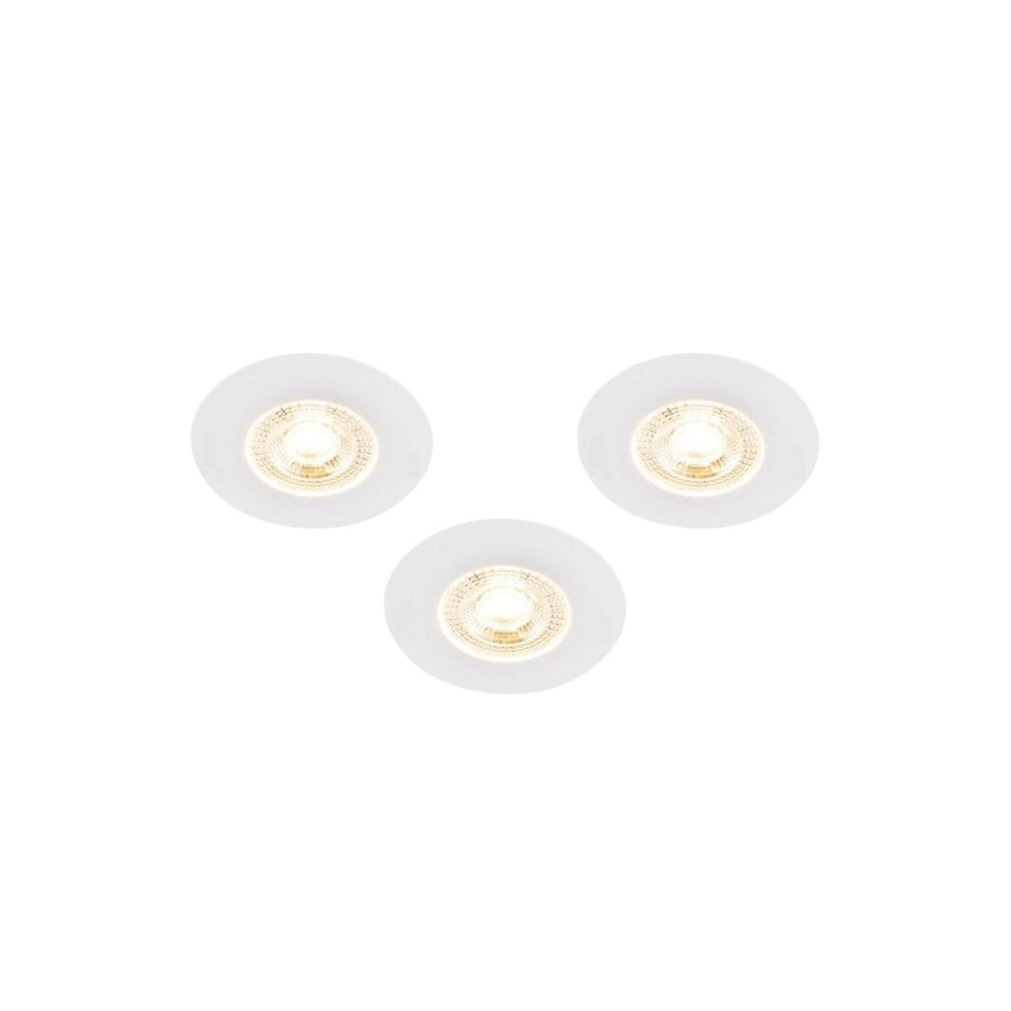 QAZQA Ulo Inbouwspot - set van 3 - 8.2x8.2cm - incl. LED - 3 staps dimbaar - IP44 - rond - mat wit Ulo is een tijdloze inbouwspot die perfect te gebruiken is als basisverlichting in de woonkamer. slaapkamer of eetkamer. Hij heeft een diameter van 8.2 cm en een hoogte van 3 cm. De inbouw heeft een diameter van 6.8 cm en een diepte van 3.1 cm. De spot is gemaakt van kunststof met een witte uitstraling. Ulo wordt geleverd inclusief niet-vervangbare LED verlichting (max. 5 Watt). Hij heeft een waarde van 2700 Kelvin en 330 lumen. wat er voor zorgt dat het een echte krachtpatser is! Gemiddeld gaat het LED 25.000 branduren mee en geeft dus langdurig plezier. De lamp is voorzien van een 3 staps dimmer. hiermee kun je extra sfeer creëren in de ruimte. Wanneer je één keer op de schakelaar duwt krijg je 30% licht (sfeerlicht). als je nog een keer duwt krijg je 60% licht. Bij een derde keer krijg je 100% licht (functioneel. wit licht). Spots zijn perfect te gebruiken als basisverlichting en met zo’n mooie spot als Ulo is het ook nog aangenaam om naar te kijken.