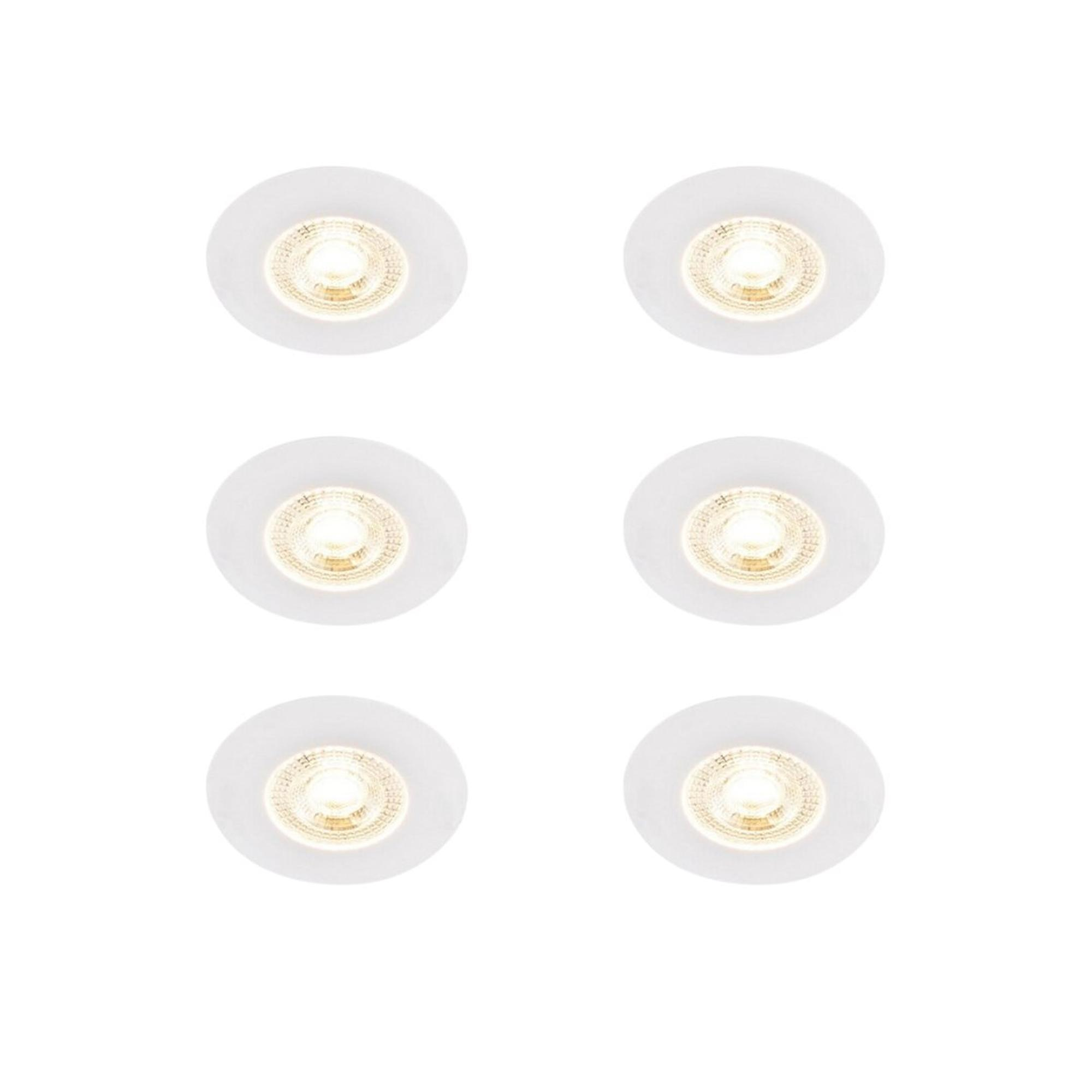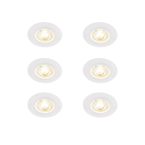 QAZQA Ulo Inbouwspot - set van 6 - 8.2x8.2cm - incl. LED - 3 staps dimbaar - IP44 - rond - mat wit Ulo is een tijdloze inbouwspot die perfect te gebruiken is als basisverlichting in de woonkamer. slaapkamer of eetkamer. Hij heeft een diameter van 8.2 cm en een hoogte van 3 cm. De inbouw heeft een diameter van 6.8 cm en een diepte van 3.1 cm. De spot is gemaakt van kunststof met een witte uitstraling. Ulo wordt geleverd inclusief niet-vervangbare LED verlichting (max. 5 Watt). Hij heeft een waarde van 2700 Kelvin en 330 lumen. wat er voor zorgt dat het een echte krachtpatser is! Gemiddeld gaat het LED 25.000 branduren mee en geeft dus langdurig plezier. De lamp is voorzien van een 3 staps dimmer. hiermee kun je extra sfeer creëren in de ruimte. Wanneer je één keer op de schakelaar duwt krijg je 30% licht (sfeerlicht). als je nog een keer duwt krijg je 60% licht. Bij een derde keer krijg je 100% licht (functioneel. wit licht). Spots zijn perfect te gebruiken als basisverlichting en met zo’n mooie spot als Ulo is het ook nog aangenaam om naar te kijken.