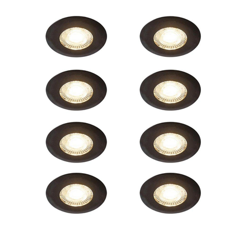 QAZQA Ulo Inbouwspot - set van 8 - 8.2x8.2cm - incl. LED - 3 staps dimbaar - IP44 - rond - mat zwart Ulo is een tijdloze inbouwspot die perfect gebruikt kan worden als basisverlichting in de woonkamer. slaapkamer of eetkamer. Hij heeft een diameter van 8.2 cm en een hoogte van 3 cm. De inbouw heeft een diameter van 6.8 cm en een diepte van 3.1 cm. De spot is gemaakt van kunststof met een stoere zwarte uitstraling. Ulo wordt geleverd inclusief niet vervangbare LED verlichting (max. 5 Watt). Hij heeft een waarde van 2700 -27000 Kelvin en 365 lumen. wat er voor zorgt dat het een echte krachtpatser is! Gemiddeld gaat het LED 25.000 branduren mee. De lamp is voorzien van een 3-staps dimmer. hiermee kun je extra sfeer creëren in de ruimte. Wanneer je één keer op de schakelaar duwt krijg je 30% licht (sfeerlicht). als je nog een keer duwt krijg je 60% licht. Bij een derde keer krijg je 100% licht (volledig licht). Spots zijn perfect te gebruiken als basisverlichting en met zo’n mooie spot als Ulo is het ook nog aangenaam om naar te kijken.