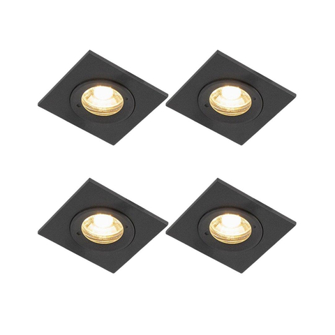 QAZQA Xena inbouwspot - set van 4 - 8x8cm - IP44 - vierkant - mat zwart